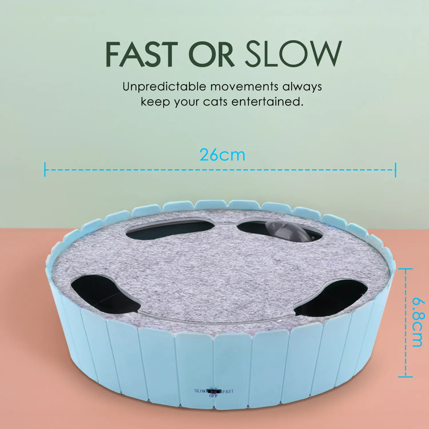 My cats initially took to this like a magnet but lost interest pretty quickly. I wish it had more patterns to the rate it pops up and down. And went faster.