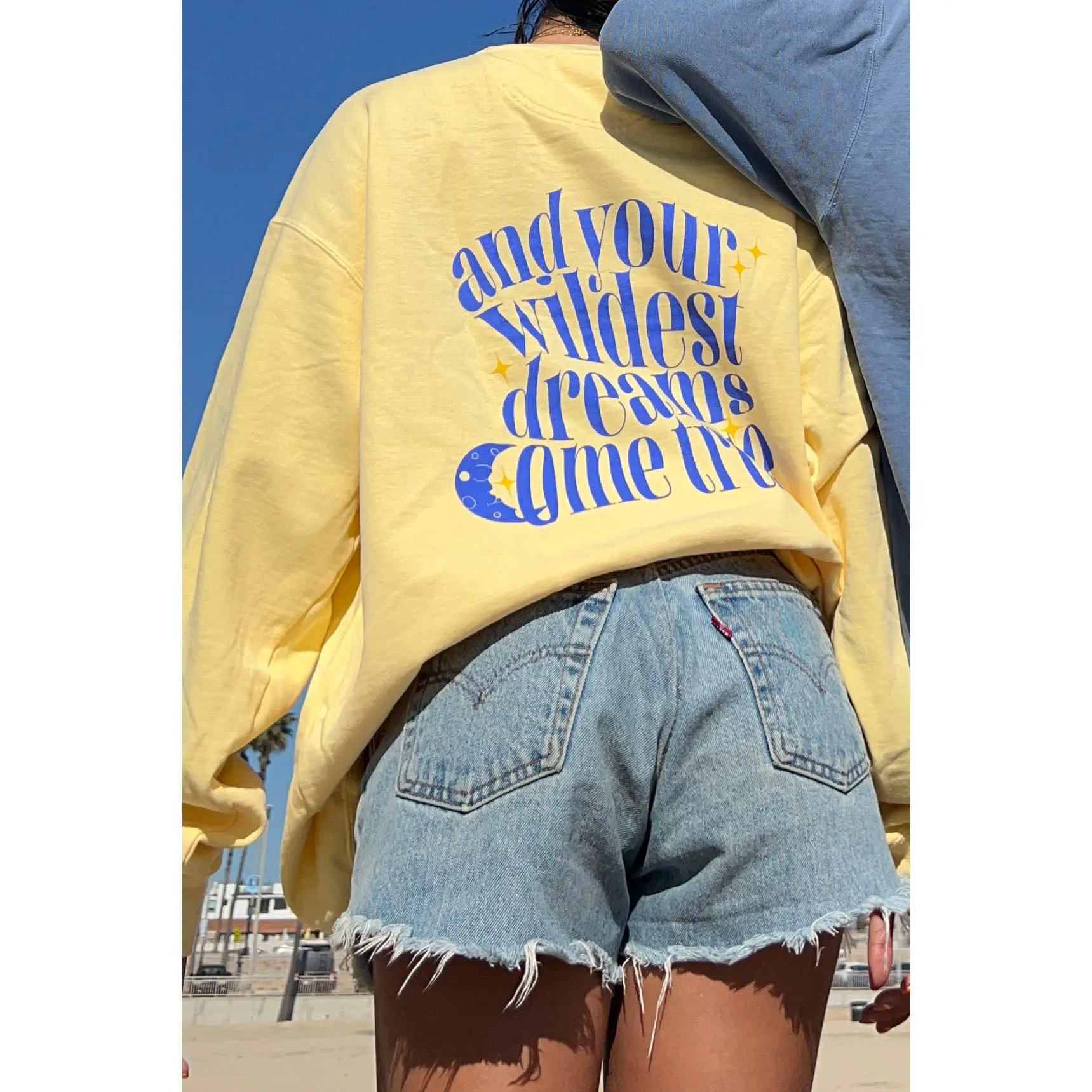 When we are in a high state of anxiety we aren't thinking of the best case scenarios. We often believe the worst can happen. Just that possibility of something bad happening can trick us into believing it will. But what if that bad thing doesn't happen? What if it all works out? What if your wildest dreams come true? This sweatshirt serves as our reminder to try our best to think positively even when that seems so out of reach. 30% of the net profits will be donated to the organization To Write Love on Her Arms (TWLOHA). TWLOHA is "a non-profit movement dedicated to presenting hope and finding help for people struggling depression, addiction, self injury, and suicide. TWLOHA exists to encourage, inform, inspire, and also to invest, directly into treatment and recovery."