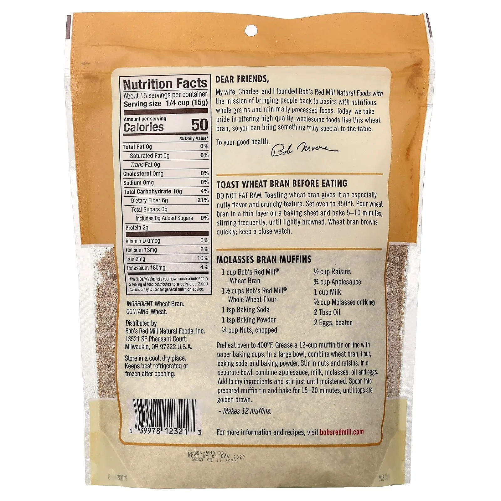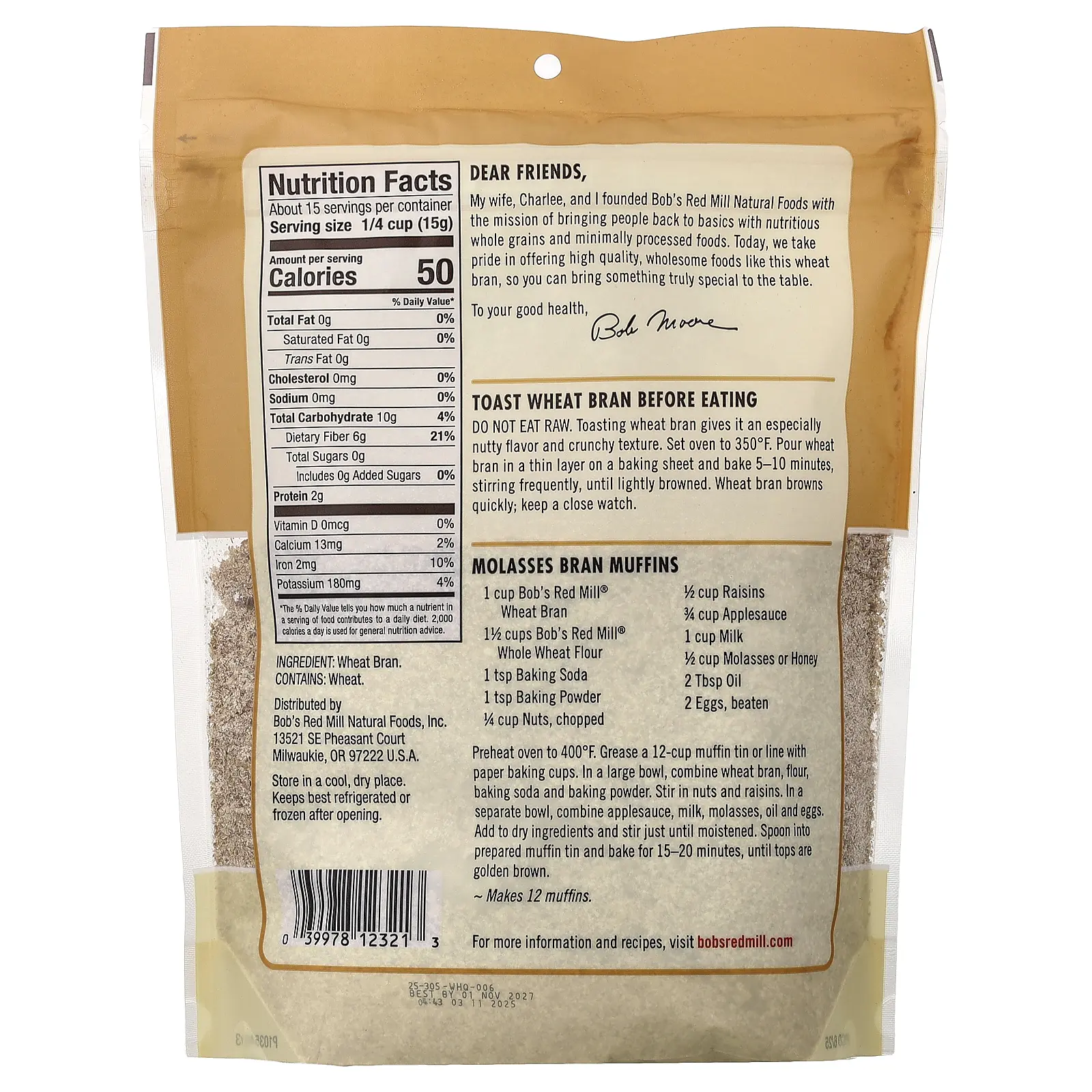 Bob's Red Mill Wheat Bran, 8 oz (227 g)