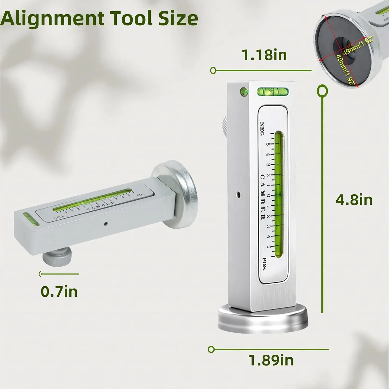 Premium Material Construction: The camber alignment tool is crafted from top-grade PC plastic, ensuring robustness and long-lasting performance.It resists oxidation, rust, and corrosion, while boasting high compressive resistance.A powerful magnet is integrated into its base, enabling effortless attachment to a variety of metal surfaces.