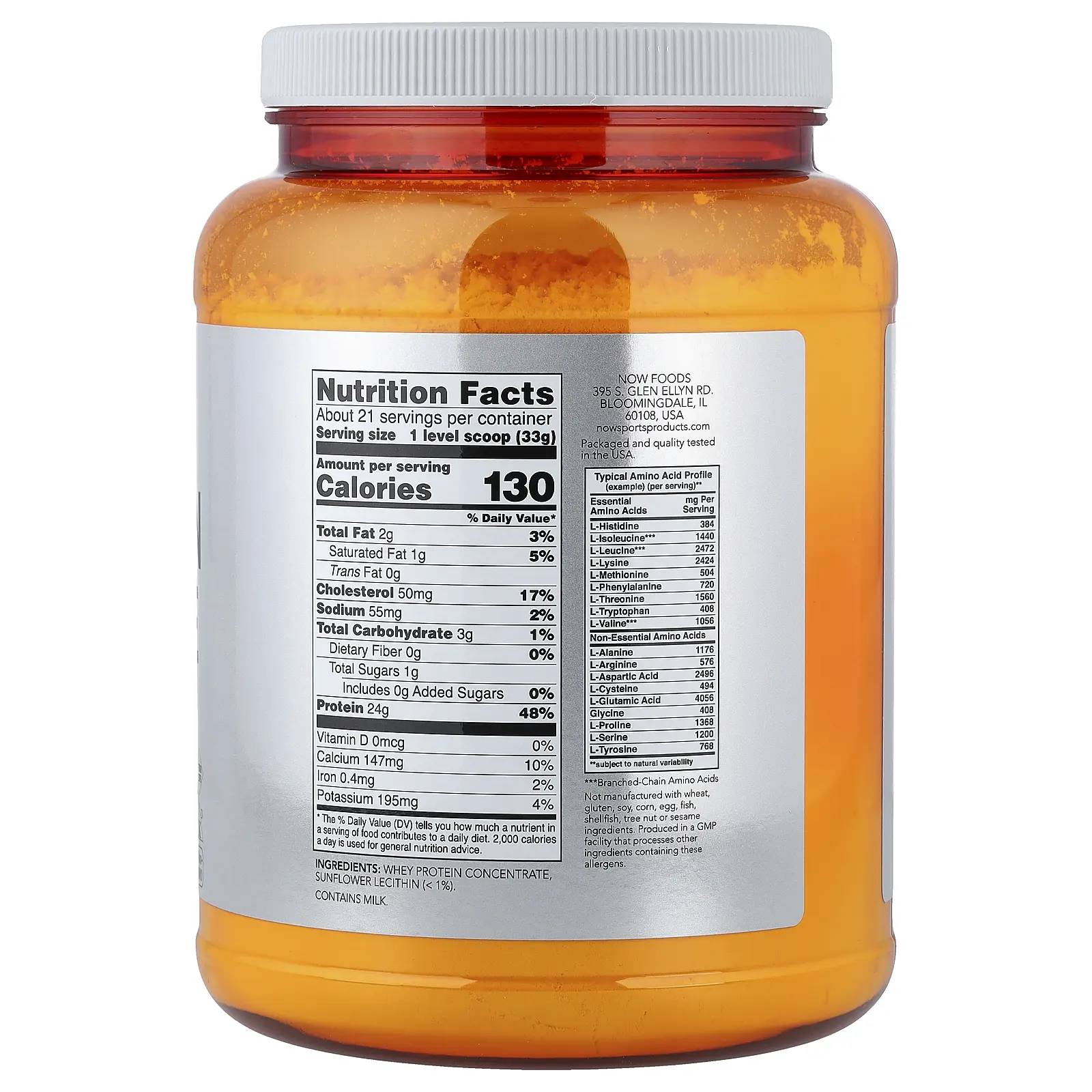 5. NOW Foods Sports, Whey Protein Concentrate Protein Powder, Unflavored, 1.5 lbs (680 g)