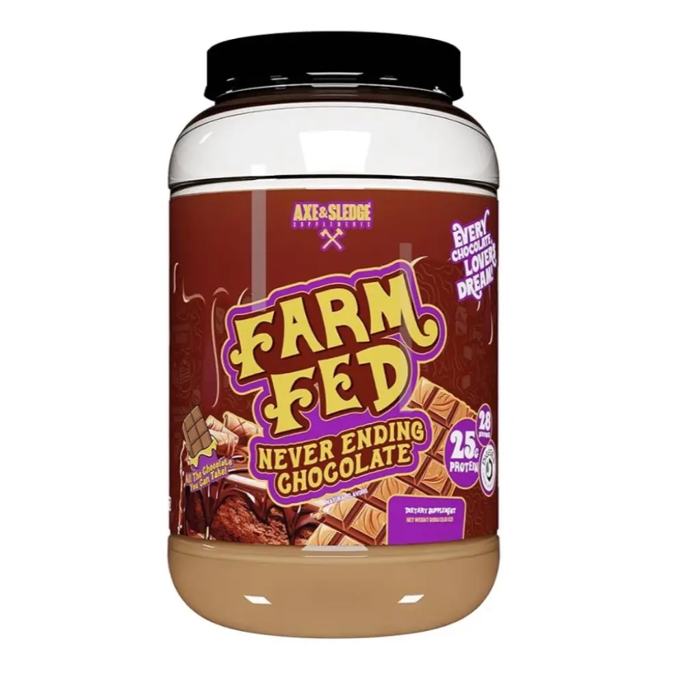 Best tasting chocolate protein of all time! Willy Wonka ain’t got nothin on Axe & Sledge Farm Fed Never Ending Chocolate!