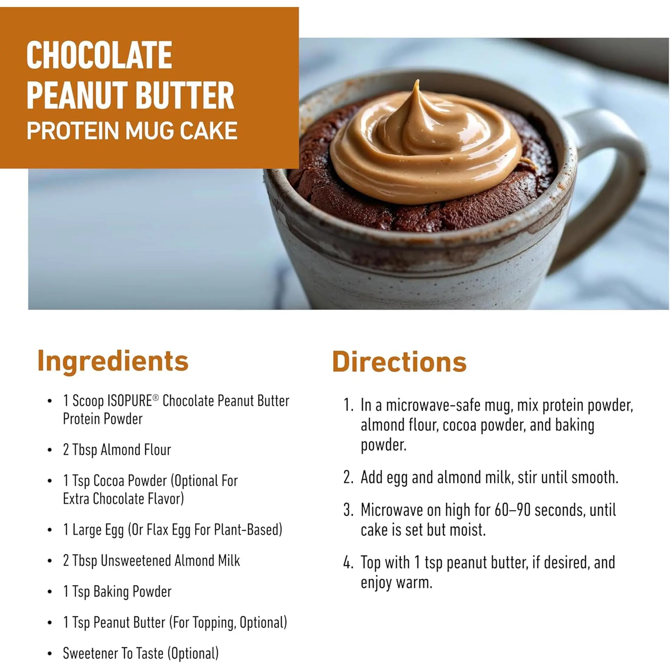 This is premium protein that’s true to its name. ISOPURE Whey Protein Isolate contains 25 grams of 100% pure whey protein isolate per scoop, stripped of fat, carbs, fillers, sugars and lactose. All with no added colors, flavors or sweeteners. It’s perfect for mixing into your favorite flavored beverages (hot or cold), soups, sauces and baked goods recipes.