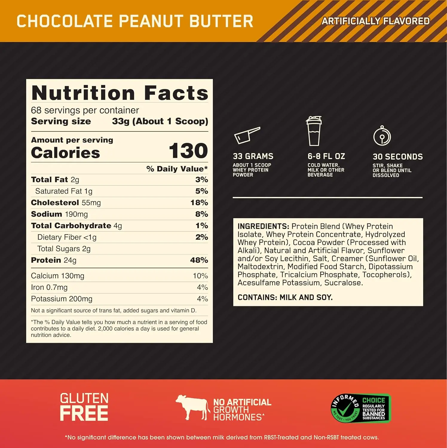 ·Gold standard 100% whey blend – 24 gram blended protein consisting of whey protein isolate, whey protein concentrate, and whey peptides to support lean muscle mass – they don't call it the gold standard of quality for nothing