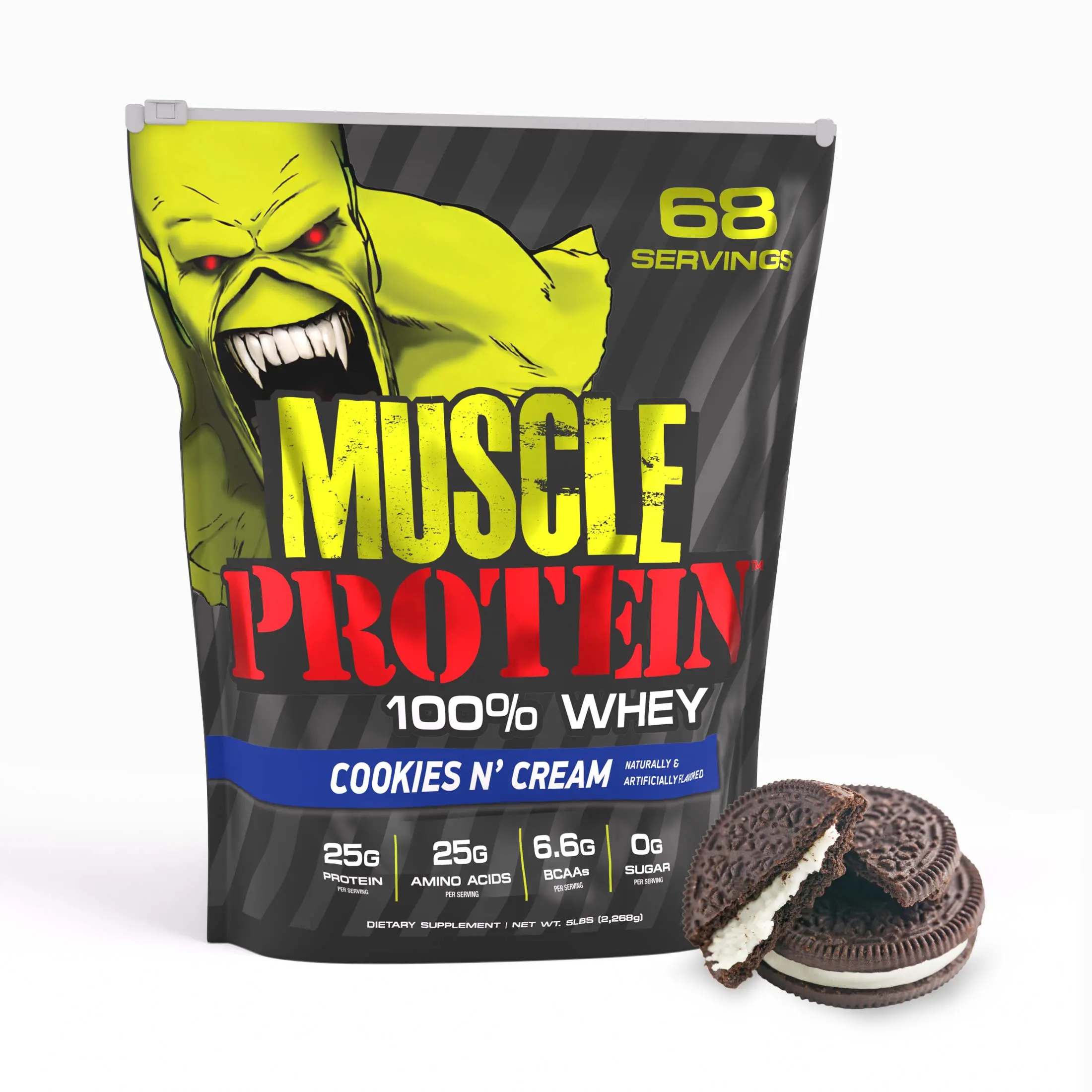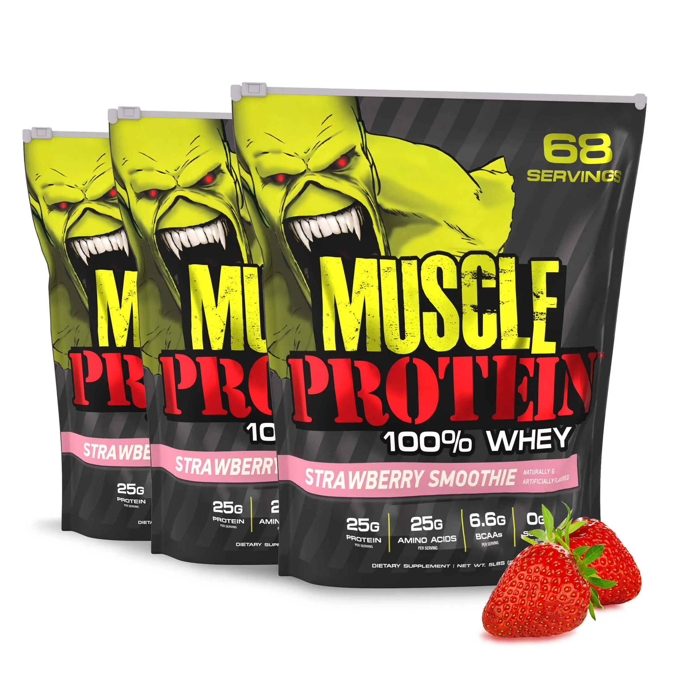 Goliath Labs 100% Whey Muscle Protein is a premium blend of whey protein concentrate designed to support muscle growth and recovery. Formulated for fast absorption and optimal bioavailability, each serving delivers 6,600 mg of BCAAs to help repair muscle tissue and promote lean muscle development. This formula is crafted to provide high-quality protein for workouts, post-training recovery, or increasing your daily protein intake.