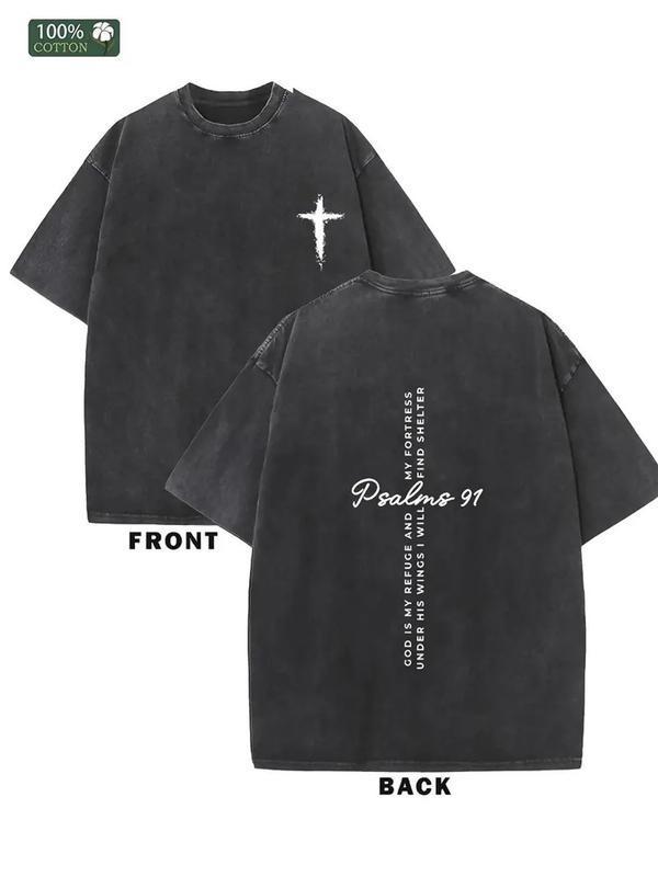 1 piece, 230G double-sided wash God is my refuge printed T-shirt, high-quality batik cotton retro fashion brand T-shirt, a certain thickness suitable y2k,Vintage,Streetwear Christmas Thanksgiving Cyber Monday