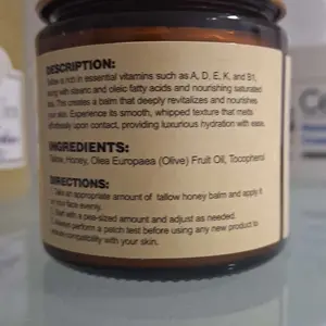 Un bรกlsamo de sebo batido y miel es un popular producto para el cuidado de la piel de estilo ancestral, elaborado con grasa animal derretida (generalmente sebo de res o cordero alimentado con pasto), mezclado con miel y, a veces, aceites.