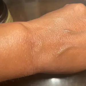 A waxy balm that turns silky when you rub it in. It doesn’t make a mess, which I like, and it leaves my hands feeling moisturized. The only downside is that it doesn’t seem to last very long. I would buy it again.