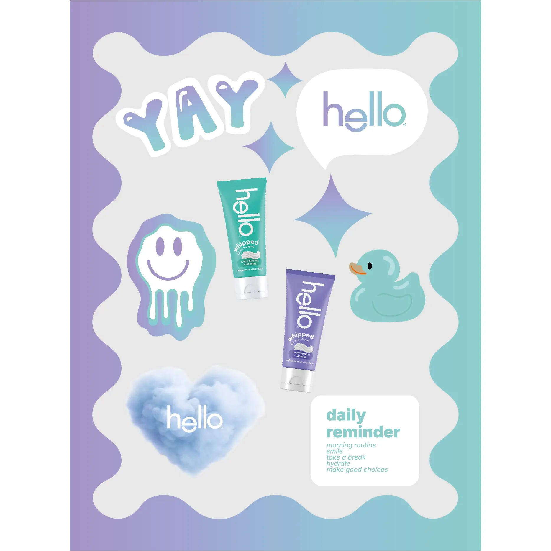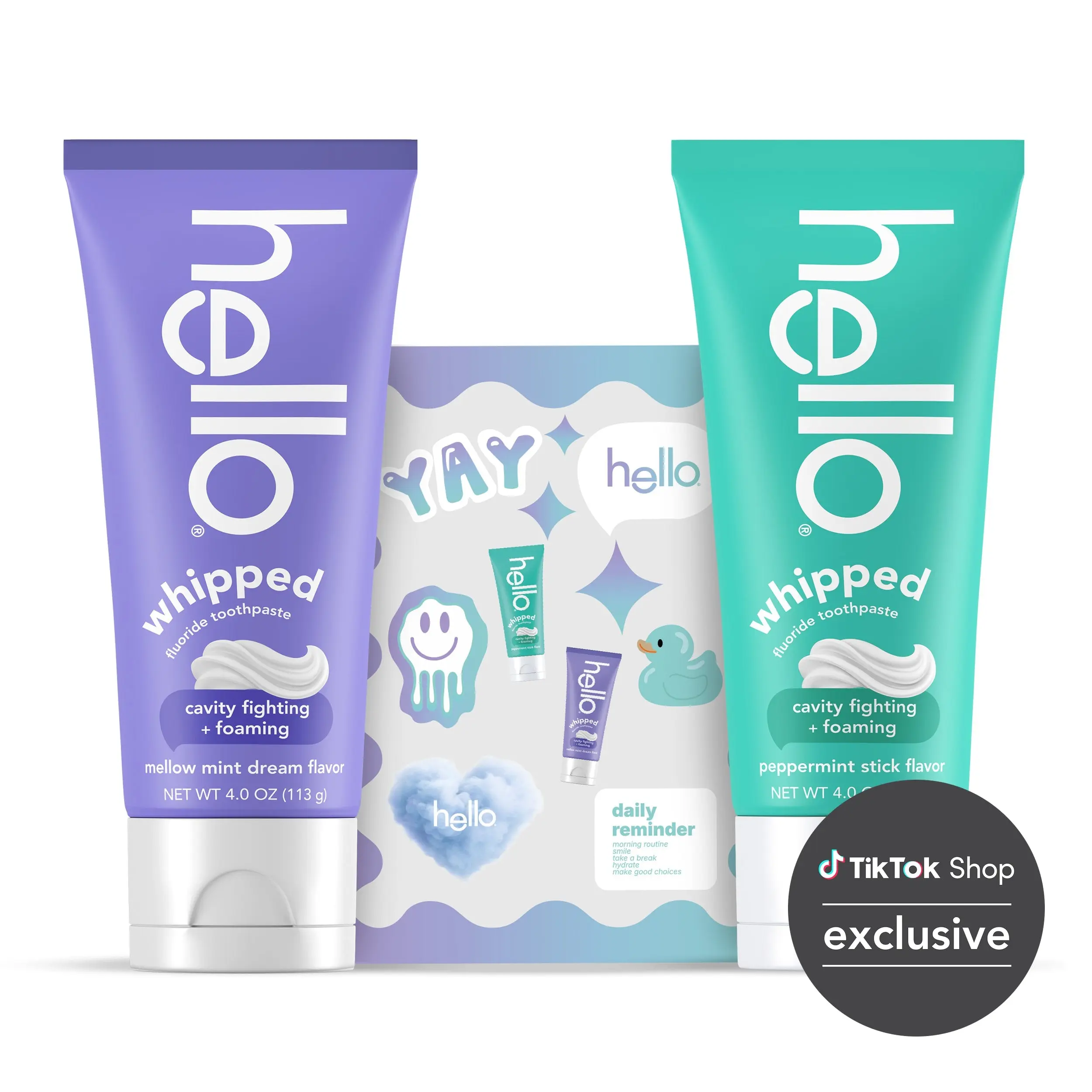 Mix, match, and make your brushing routine more fun with the whipped toothpaste variety pack. This set pairs two whipped fluoride toothpastes with a limited-edition 3D sticker sheet. 🎨 Each toothpaste offers a unique minty flavor and foamy moment. The stickers let you add personality wherever you go. 📌