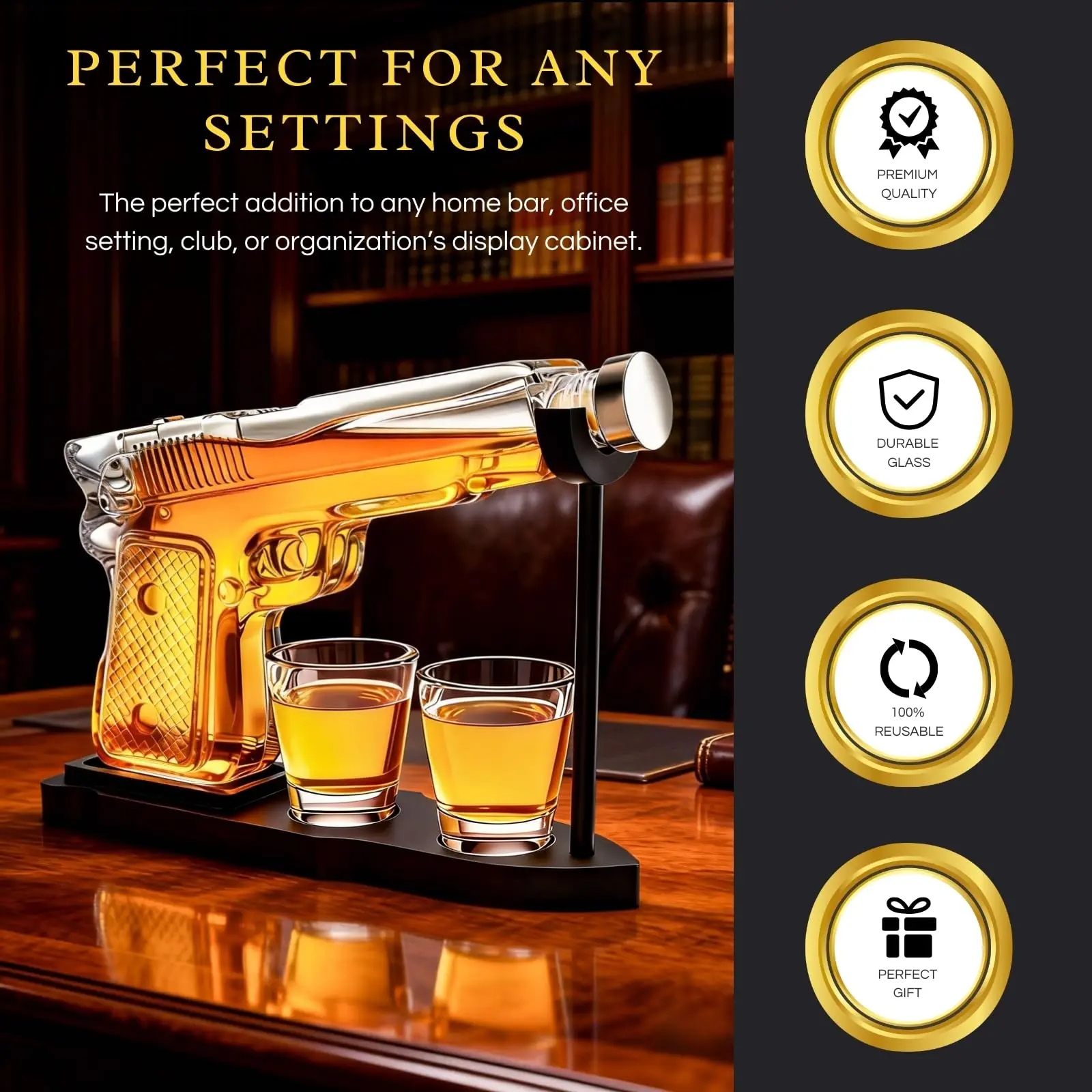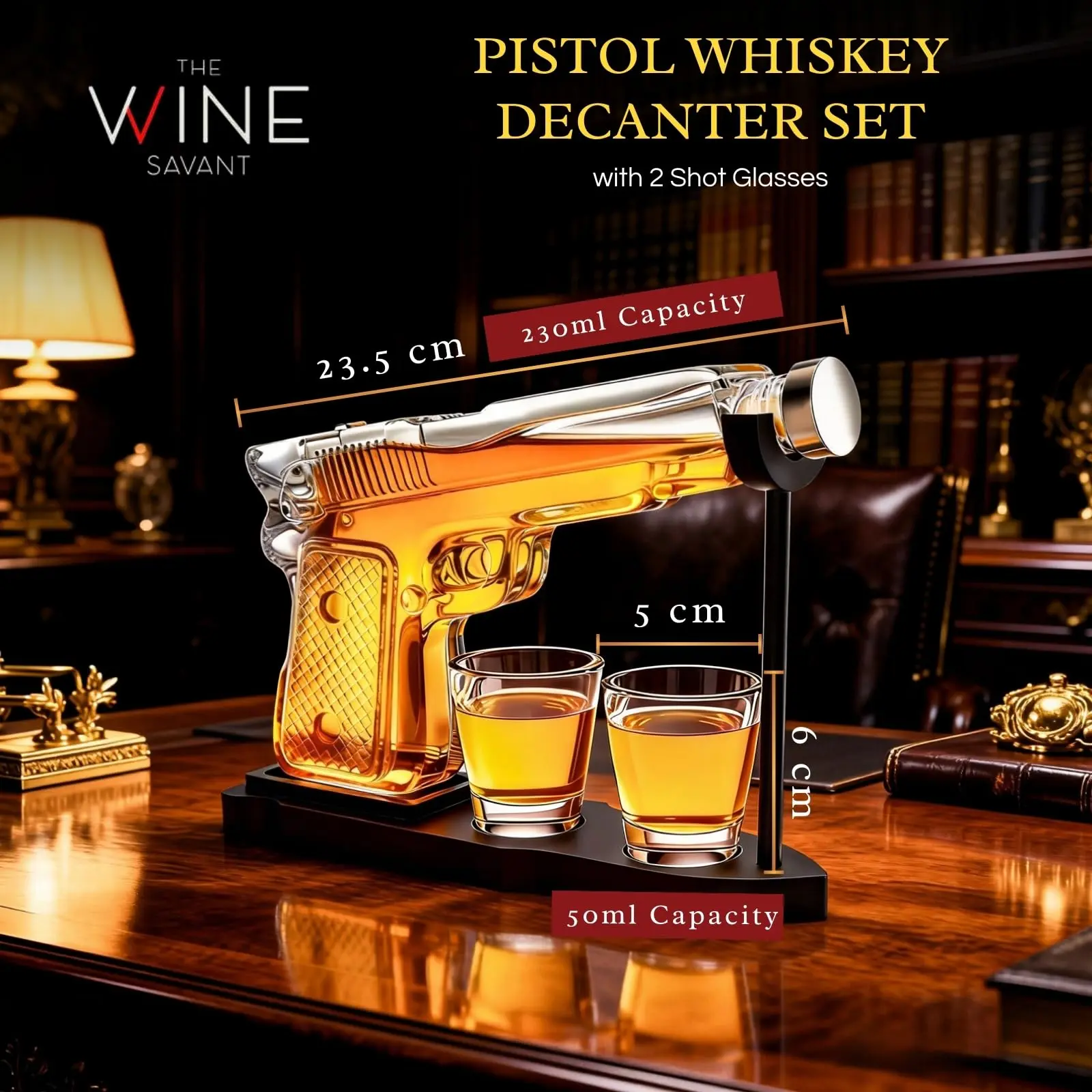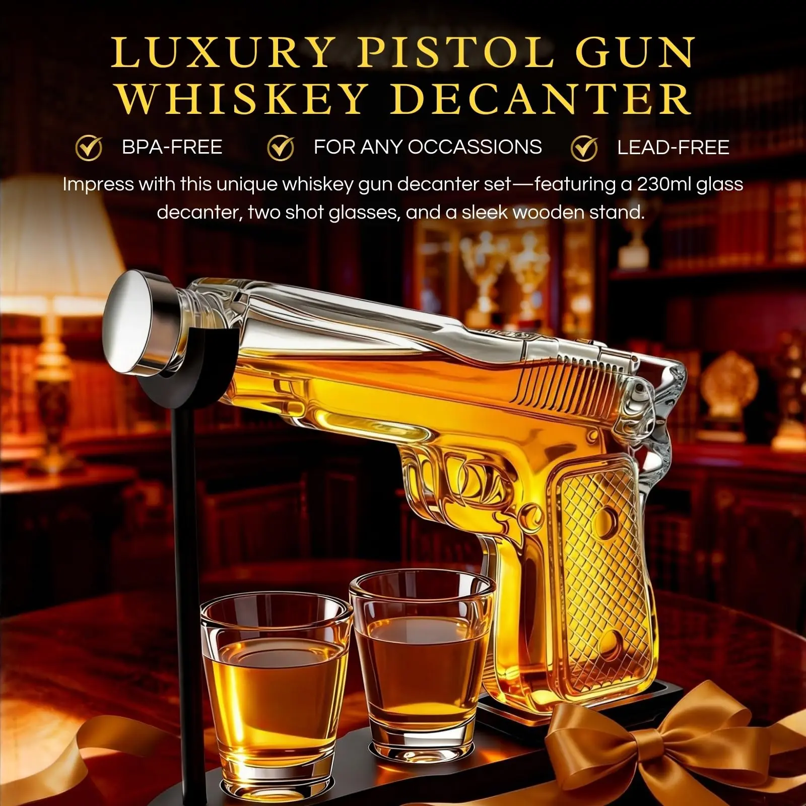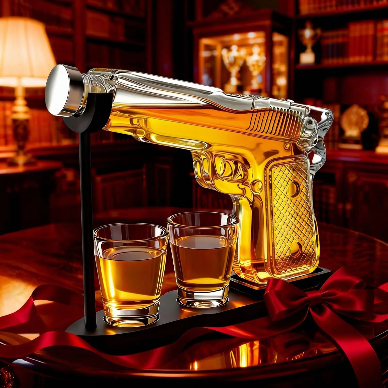 Gifts for Men Dad, 9 Oz Whiskey Gun Decanter Set, Unique Dad Birthday Gift Ideas from Daughter Son, Retirement Bar Stuff Gift for Father Him Brother, Pistol Dispenser for Liquor Vodka - Shot Glasses