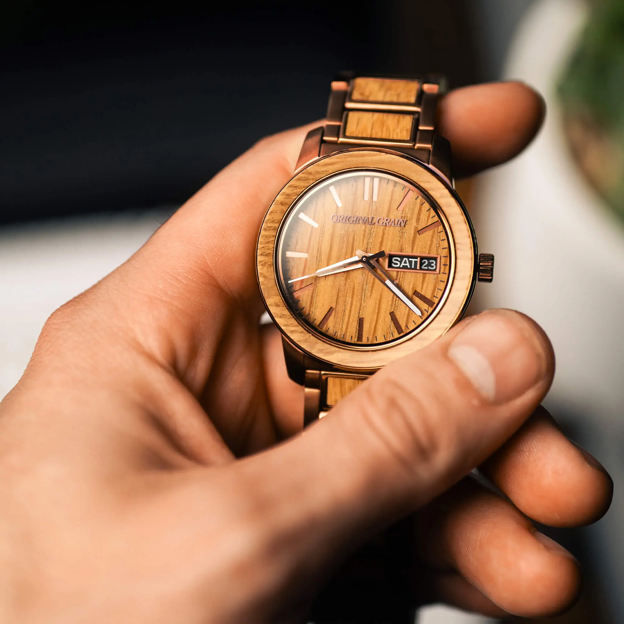 Loved this watch! Gave it to my son as a Christmas present. He loved it and it looks so great on him. It is very impressive and high end, one of a kind watch. The wooden box it came in highlighted the gift for sure! Thanks for making something so unique!