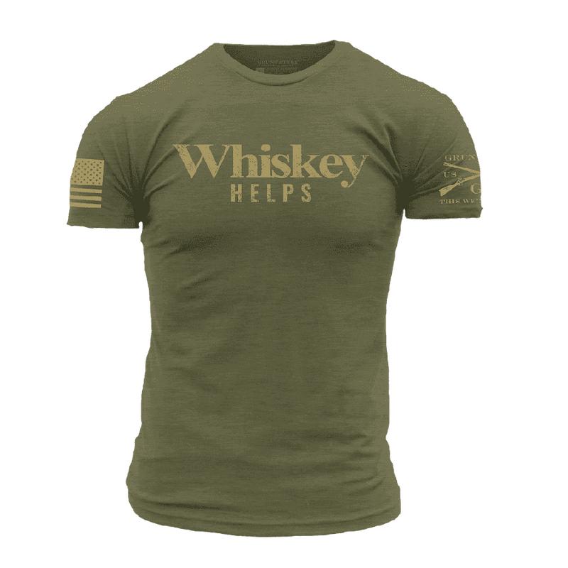 For those who know that sometimes whiskey is the answer, the Whiskey Helps™ T-Shirt in Military Green delivers the perfect mix of style and humor. Featuring the bold "Whiskey Helps™" graphic, this shirt is ideal for anyone who enjoys a good drink and a laid-back vibe. Whether you're at a bar with friends, enjoying a night in, or just want to showcase your love for whiskey, this tee is the ultimate addition to your casual wardrobe.Our Patriotic Shirts are crafted with the following details: