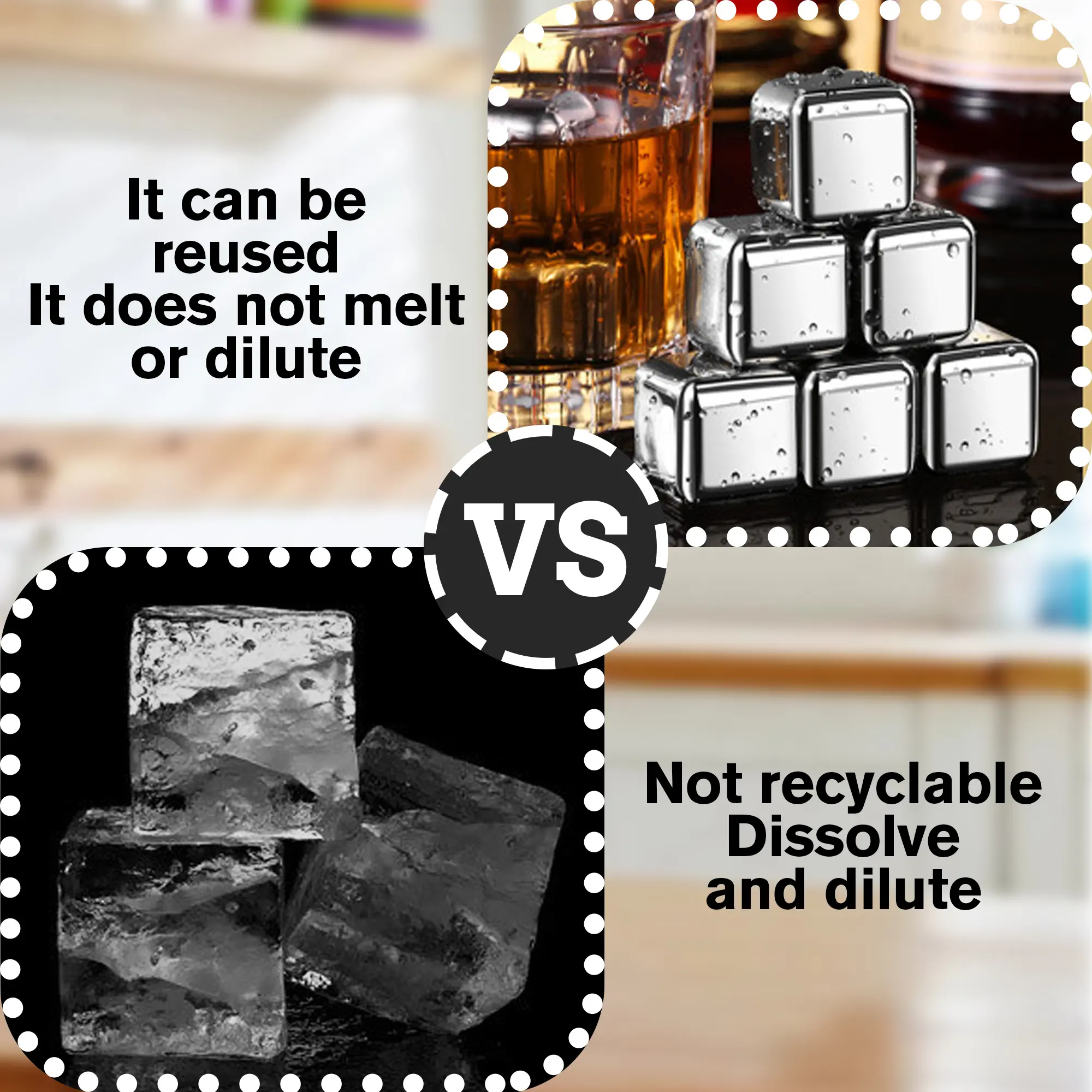 Food-grade Safety Guarantee - The whiskey stones are made with high-quality 304 stainless steel that are conform with food-grade standards, ensuring it safe and without any harmful chemicals into your drink