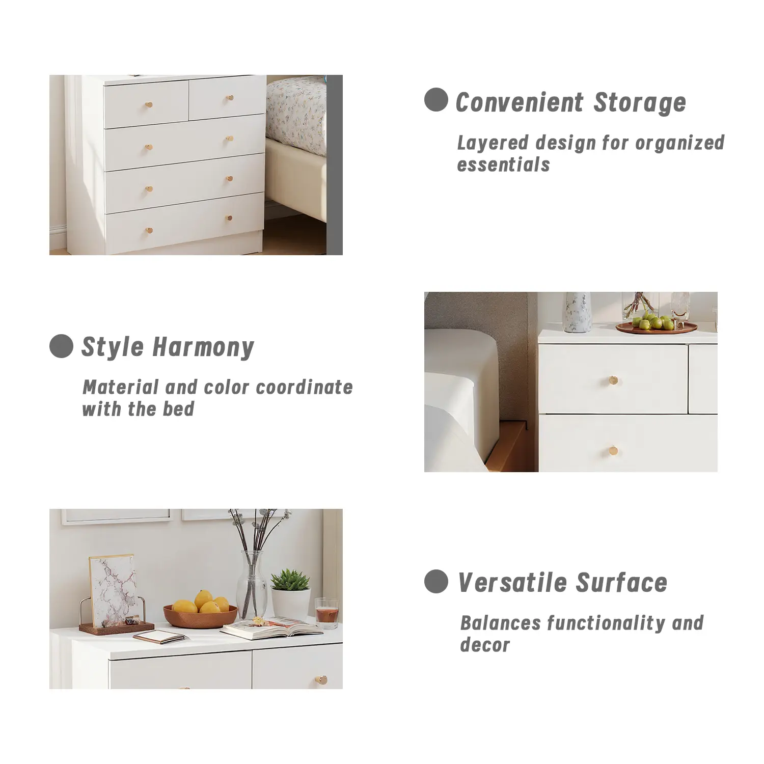 ·Upgraded Drawer Dresser: We focus on customer needs, upgraded and developed multiple sizes for customers to choose from, and offered thoughtful design with two small top drawers, perfect for storing smaller items and ensuring quick access when needed.