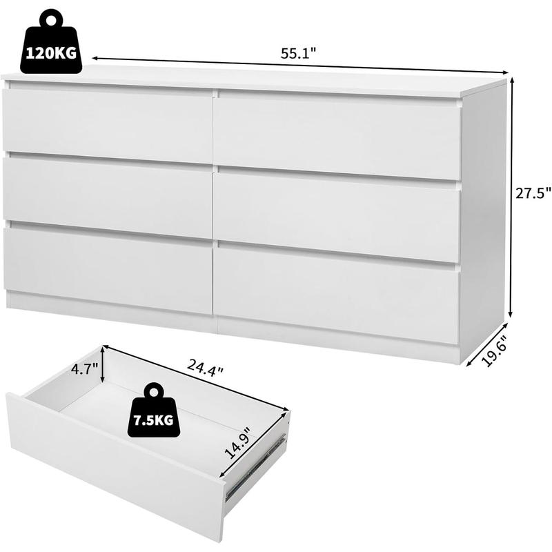 Karl home 6 drawer double dresser, crafted from durable p2 class particle board, is built to withstand everyday use. Its chic black finish makes it a stylish addition to any bedroom, living room, or entryway. The spacious drawers offer ample storage for your belongings, keeping your home neat and organized. Elevate your space with this versatile, aesthetic, and practical dresser.
