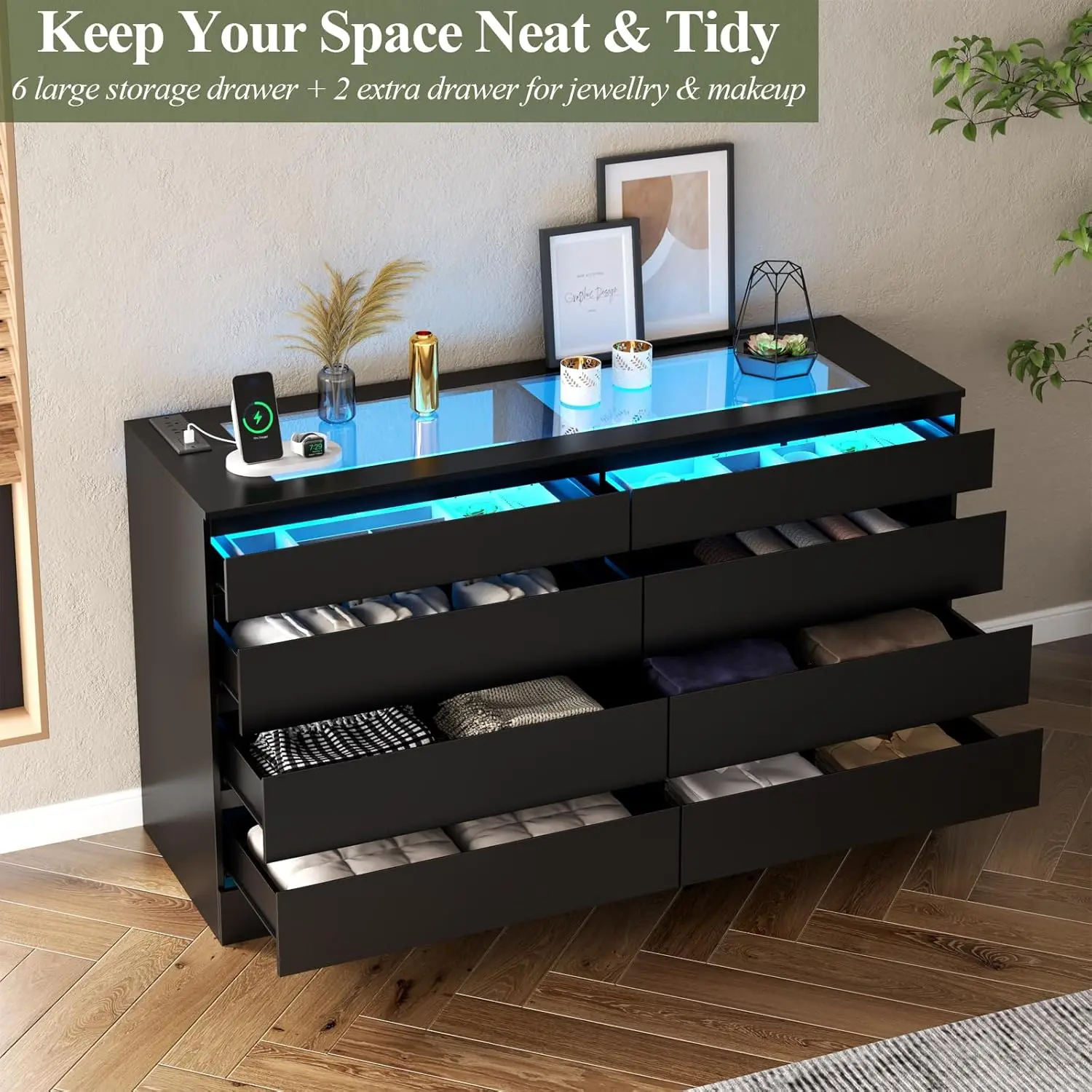 ·Experience the perfect fusion of style and modern convenience with our LED dresser, now upgraded with a built-in charging station. Whether it's your smartphone, tablet, or smartwatch, you can keep them charged and ready to go. This practical enhancement transforms the white drawer dresser from a mere storage solution into a hub of organization and connectivity.