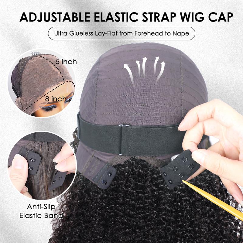Pizazz Hair 4C Edges Curly Bye Bye Knots Bob Wig 280% Density 8x5 Lace Front Wigs Human Hair Pre Bleached Pre Plucked with Curly Baby Hair Hairline Transparent HD Lace Frontal Wig
