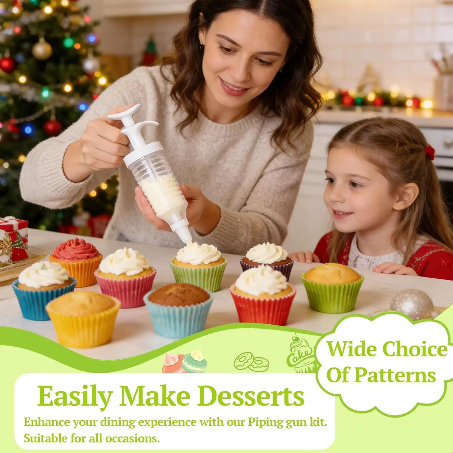 ·【Versatile Baking Companion】This icing gun is perfect for decorating cakes, cookies, pies, brownies, candies, and even appetizers like deviled eggs. Elevate your baking creations with ease.
