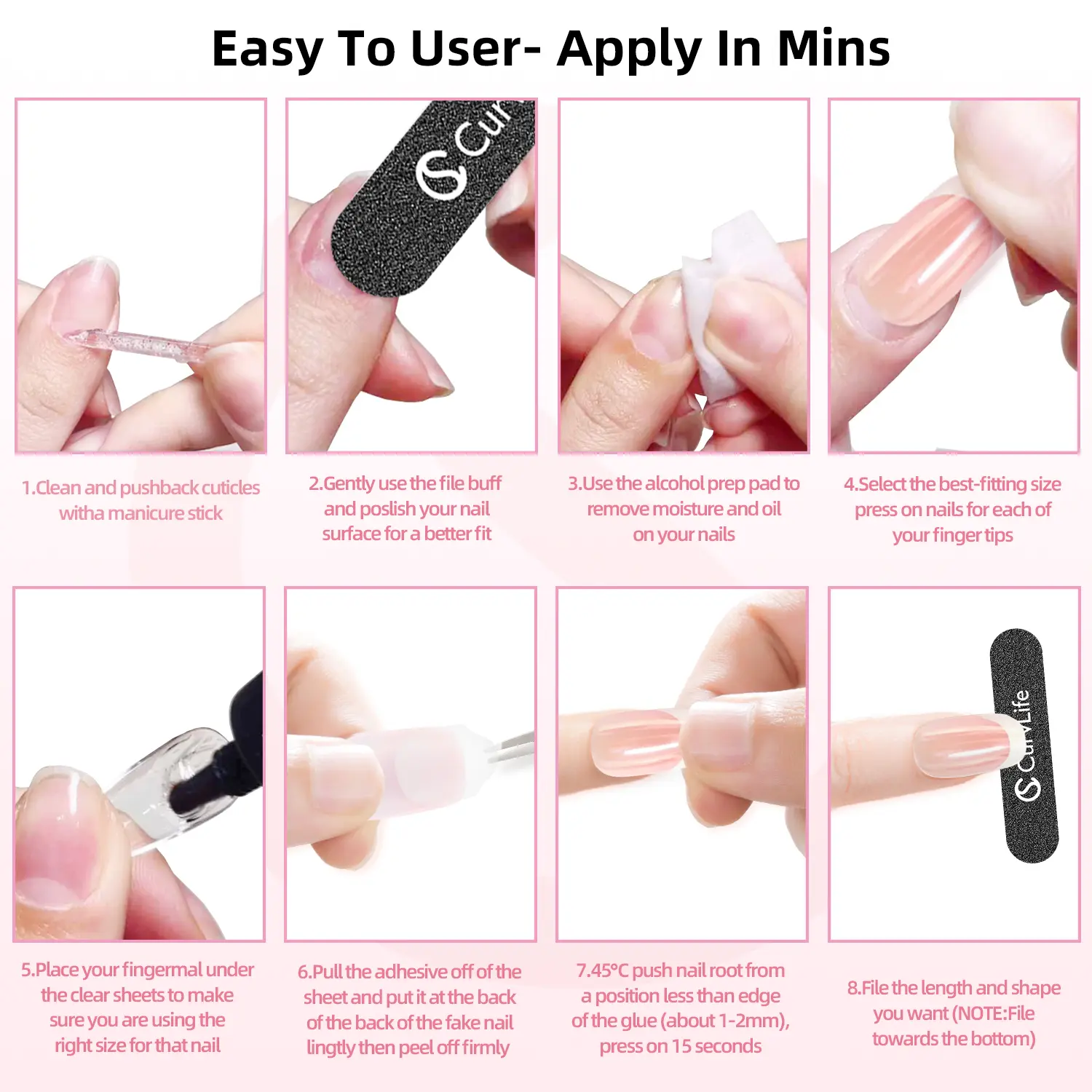 Natural & Comfortable Wear: Curvlife Nail's short press-ons use soft, flexible gel material, designed to fit your nail beds naturally and comfortably, eliminating pressure and ensuring seamless integration with your nail shape and cuticle line.