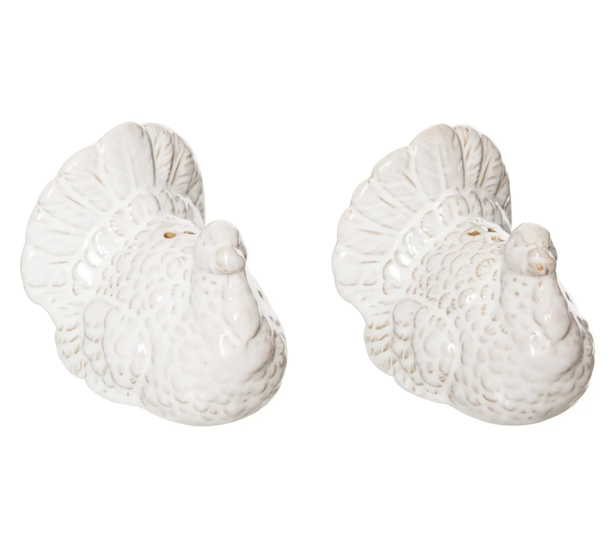 Bring a festive flair to your meals with these charming turkey-shaped shakers. Perfect for adding a sprinkle of salt and pepper to your Thanksgiving feast, they boast a glossy white finish that blends seamlessly with any table decor. From the Valerie Parr Hill Collection.