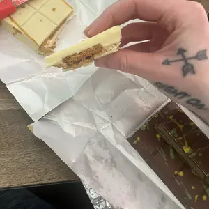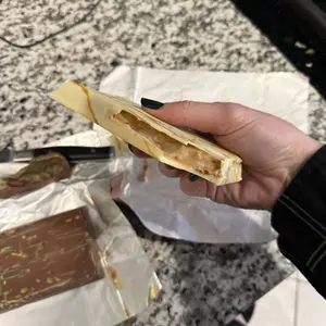 Pretty disappointed in this one for the price. It was mostly just average tasting thick white chocolate with a biscoff cookie in the middle. Thought the filling would be like the photos represented or like the pistachio one but unfortunately it was 80% unevenly distributed white chocolate that was hard to bite into cuz the entire bottom half was just a thick hard white chocolate with a thin layer of the filling and a basic biscoff cookie in the middle. Not worth the price tag associated. Shipping was outstanding though, they were really fast and came with ice packs so points given for that fs