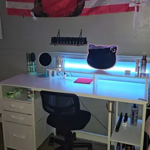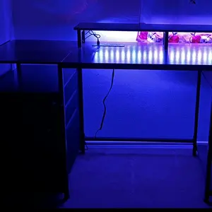 ·Gaming Desk With LED Lights: Download the mobile APP, you can not only control the color, brightness and color temperature of the LED strips but also set up all kinds of fancy flash mode. Also this App can change the light of the LED strip according to the rhythm of the music. You can choose any mode and color to decorate your room, creating a cooler gaming atmosphere.
