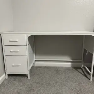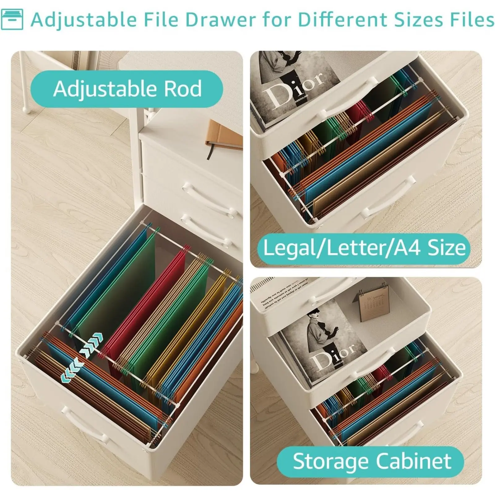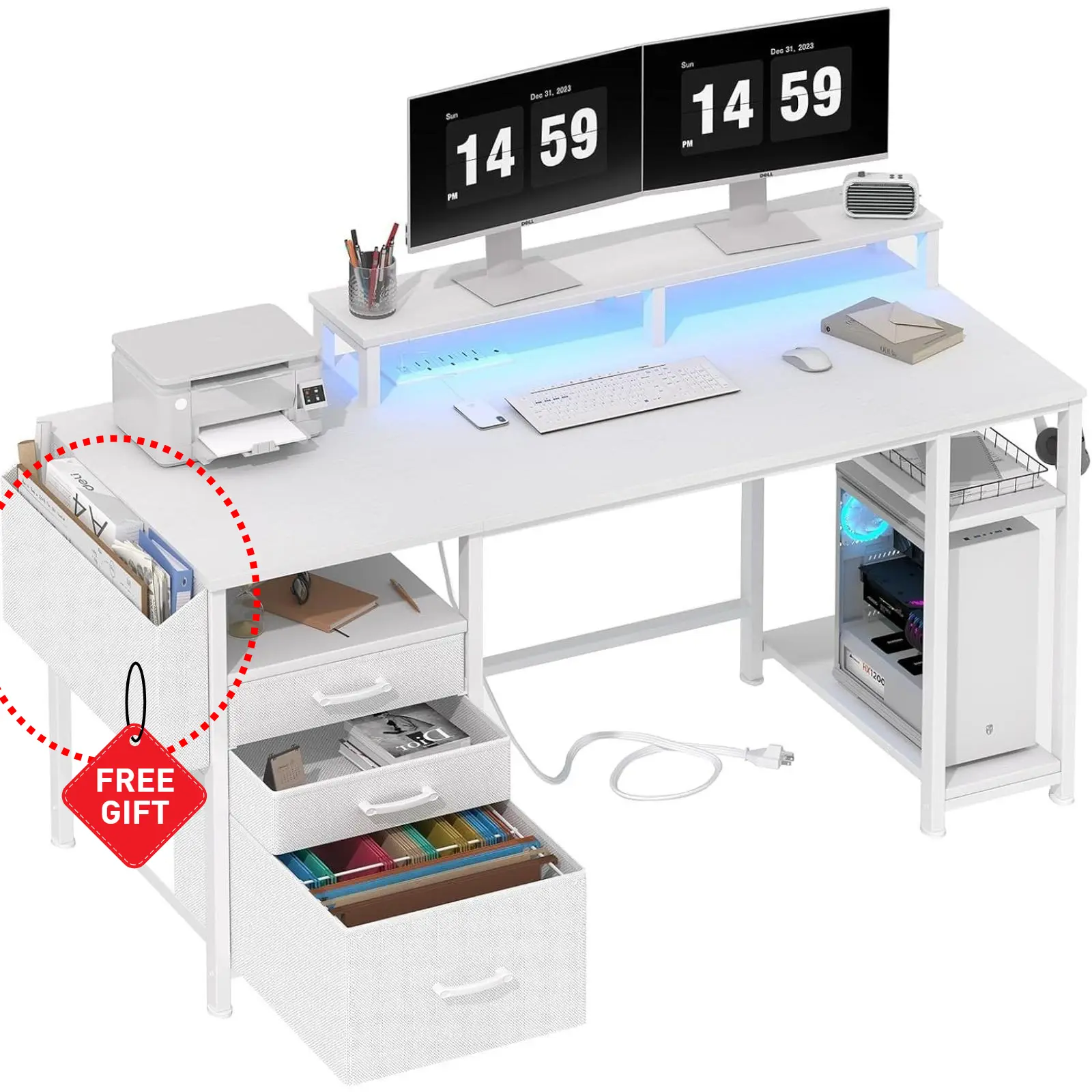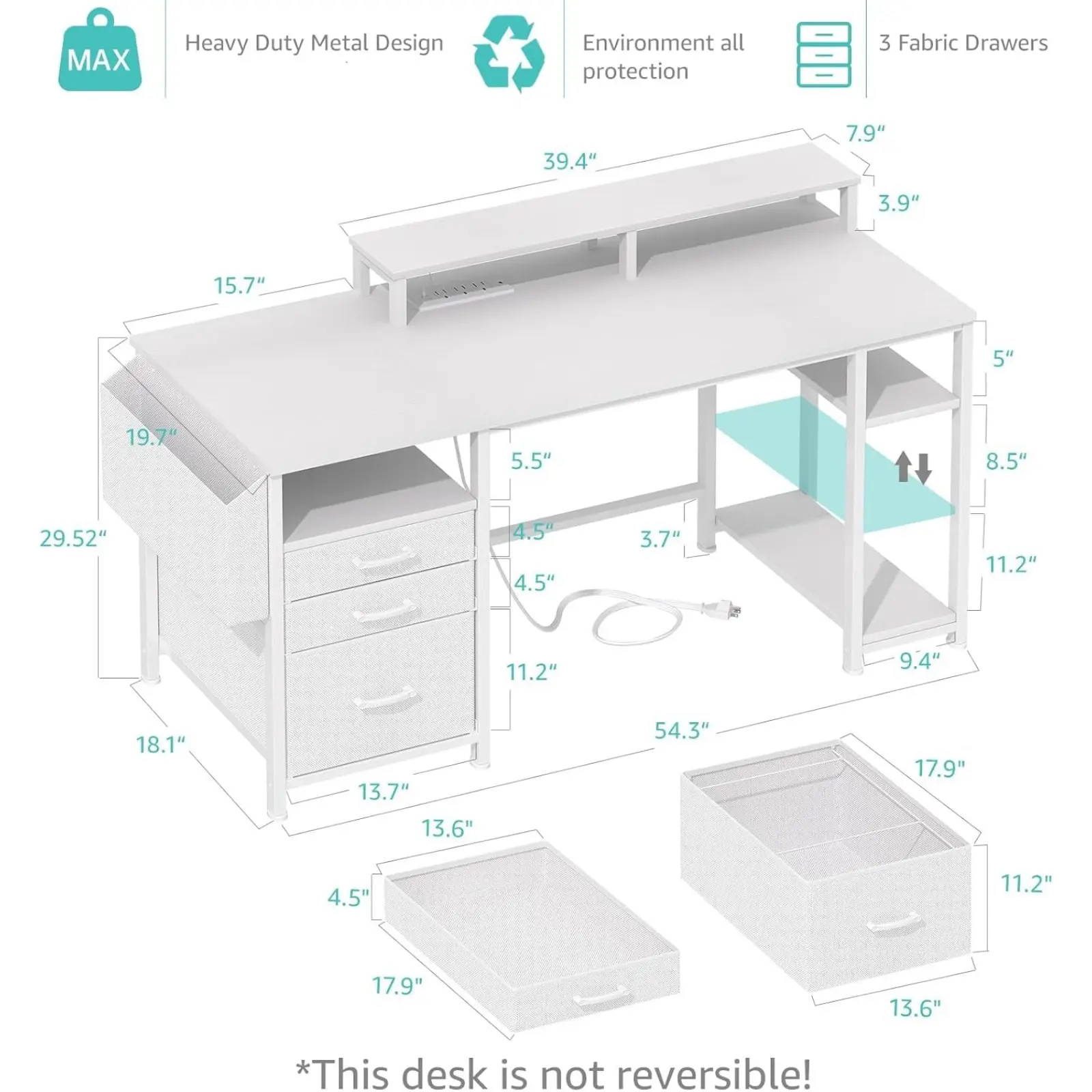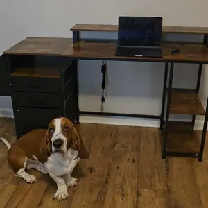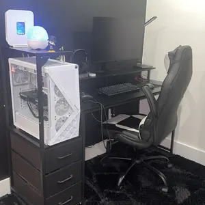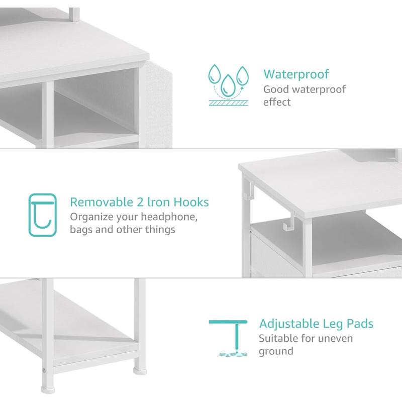 ·Versatile File Cabinet And Drawers: Computer desk with 3 Fabric Drawers, the addition of this feature renders the desk lightweight and facilitates its mobility. One versatile file cabinet keep everything you need well organized and easily accessible, the adjustable file drawer is suitable for hanging legal size or letter size files. Two small drawers offers storage solution to your home office supplies.