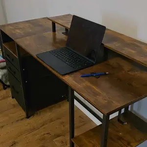 ·Work Desk With Storage Shelves: The fixed shelf is capable of accommodating office supplies or personal items. Features 2-tier adjustable shelves that can be customized to your preference, by installing the middle board in the upper hole, space can be created for a computer tower.