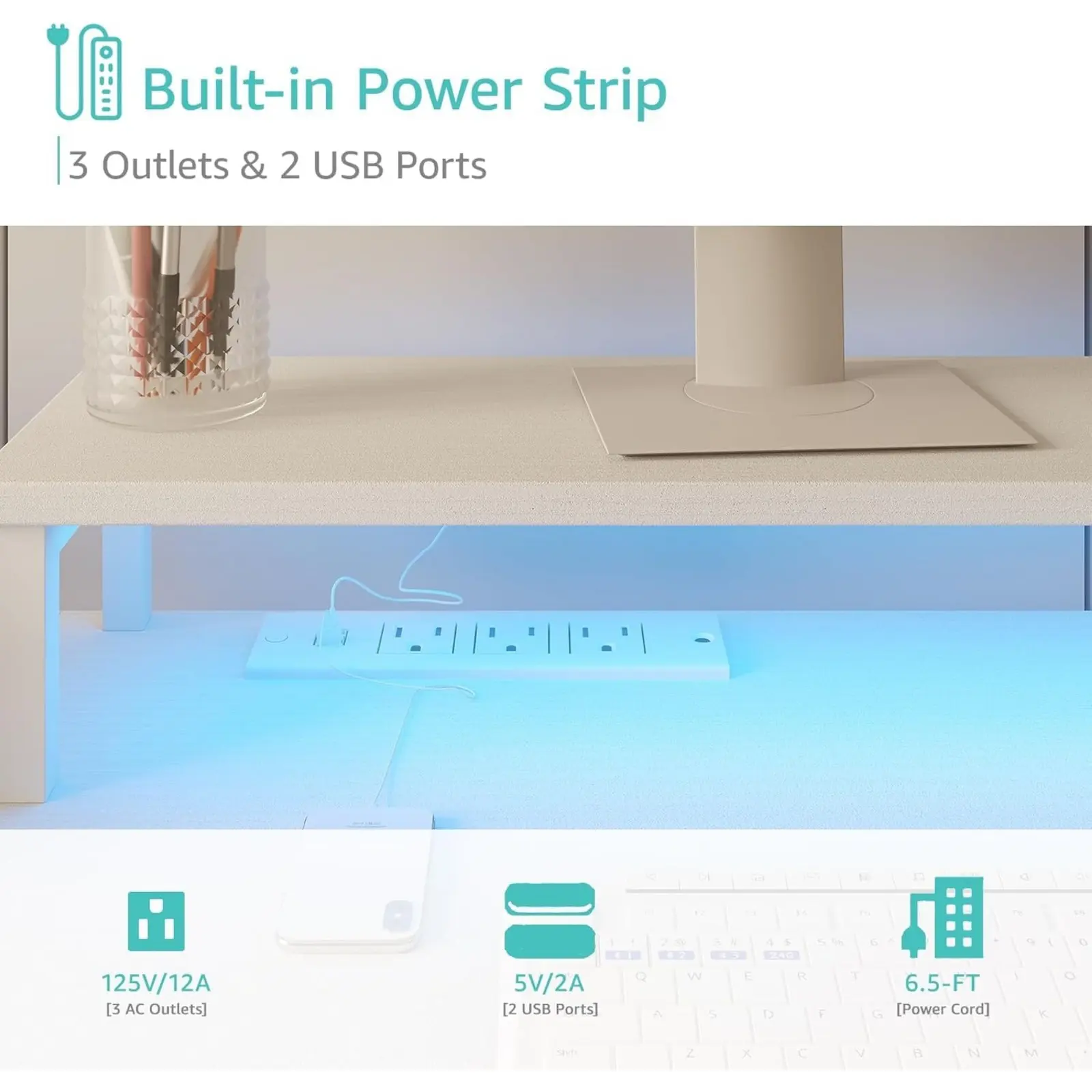 ·Safety Multifunctional Power Strip: The computer desk includes a built-in power strip with 3 power outlets & 2 USB charging ports for your computer, monitor, gaming gear, pad, phone and other electronic devices.