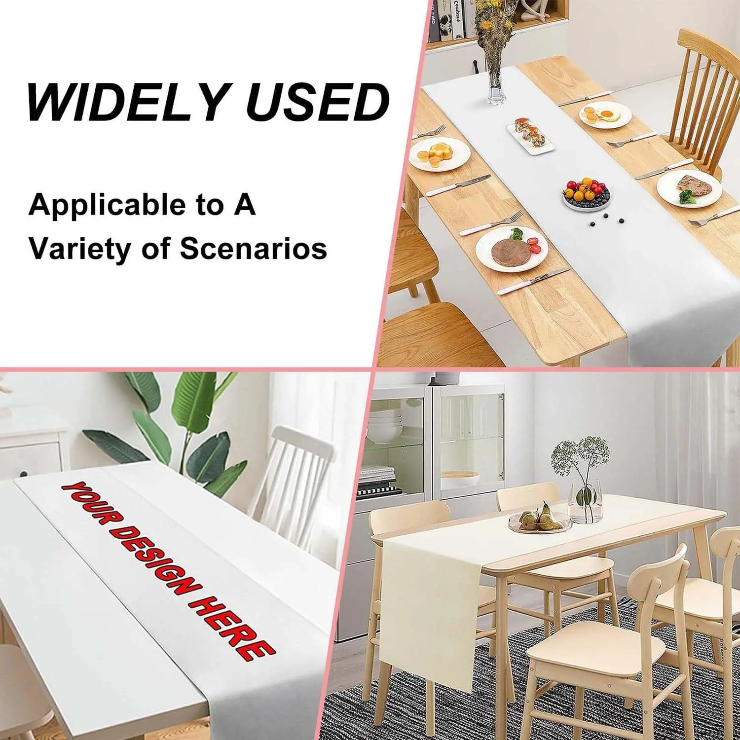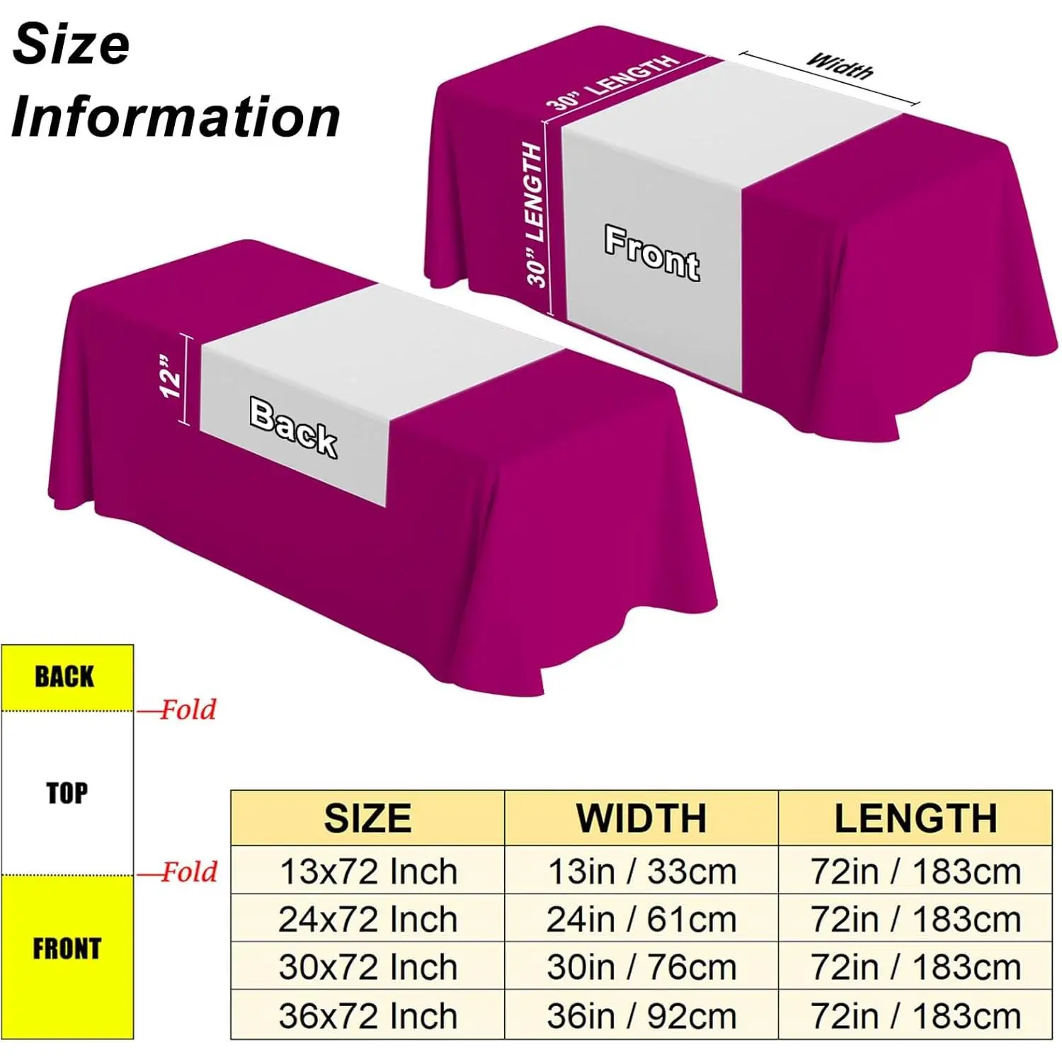 White Table Runner Table with Business Logo Text 72 Inches Long Blank DIY for Party, Birthday, Wedding, Tradeshow Events, 13"x72"