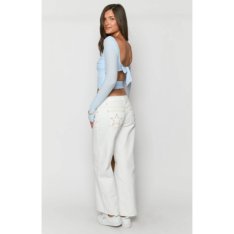 White Denim Jeans How to style: Our Clara Star White Denim Low Rise Jeans are the perfect not-so basic piece for those colder days! Featuring an adorable star patch on the back pocket and made in a low rise fit, these jeans are the perfect cool and casual staple! Pair with a knit jumper and sneakers for an effortlessly cute and casual look. Features: