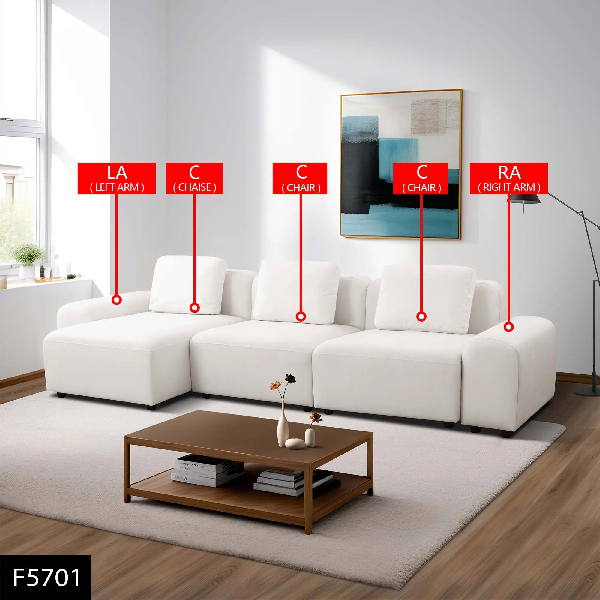 Flexible 4-Piece Modular Design: Mix, match, and rearrange to fit any space – small apartments, open-concept lofts, or cozy family rooms. Create a chaise, a full sectional, or any layout that matches your vibe.