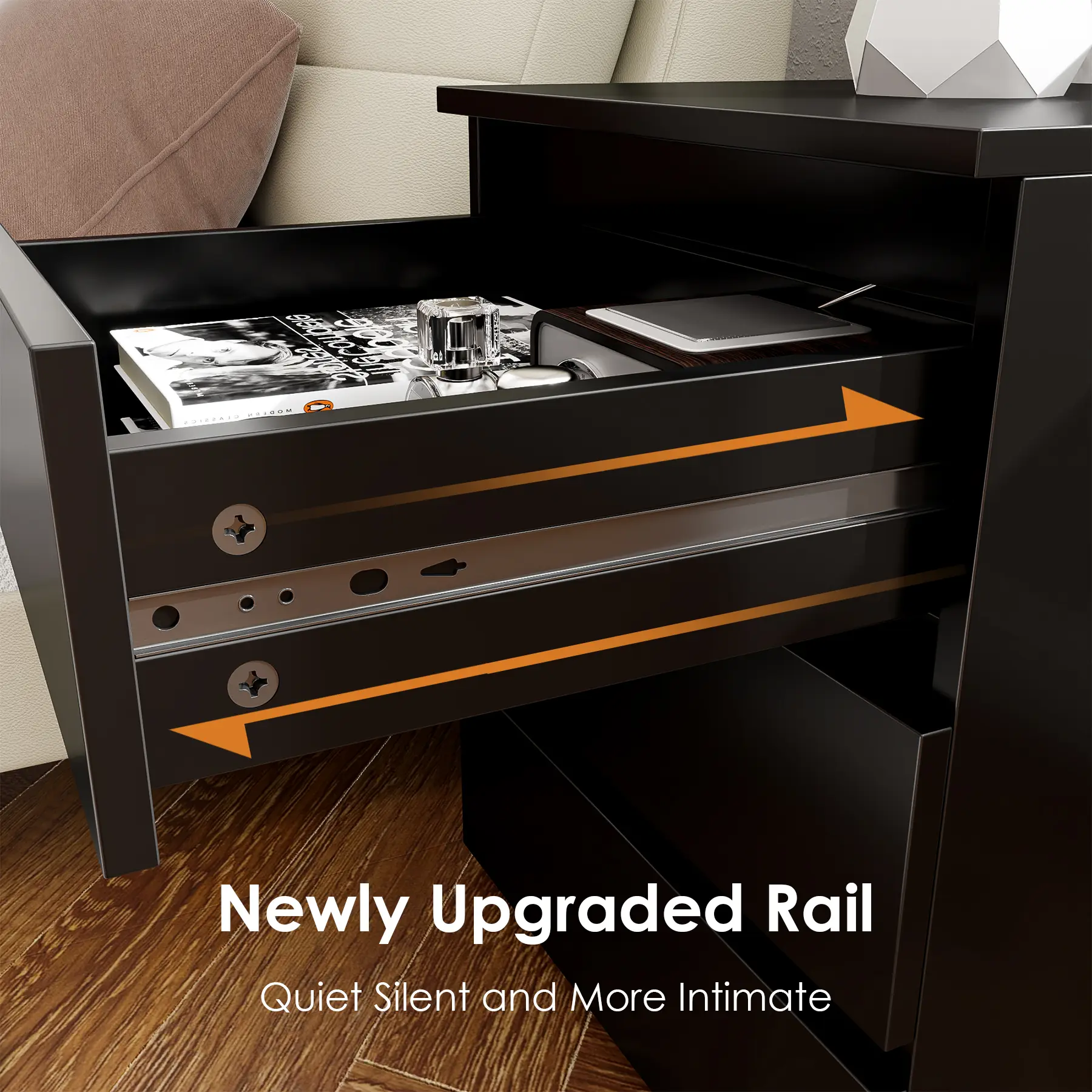 The nightstand is nice, sturdy, and sleek. However, as far as use as a bedroom nightstand, despite having 3 drawers space is very limited and you will find that its moreso for decor! My room is on the smaller side so i feel the size was better to work with so I can have space to have things!
