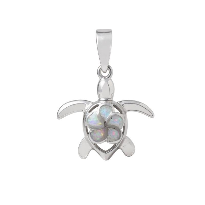 5. Sterling Silver White Opal Plumeria Flower Turtle Pendant