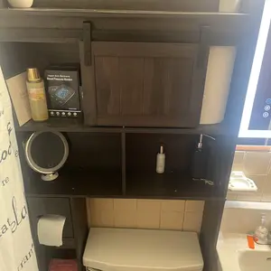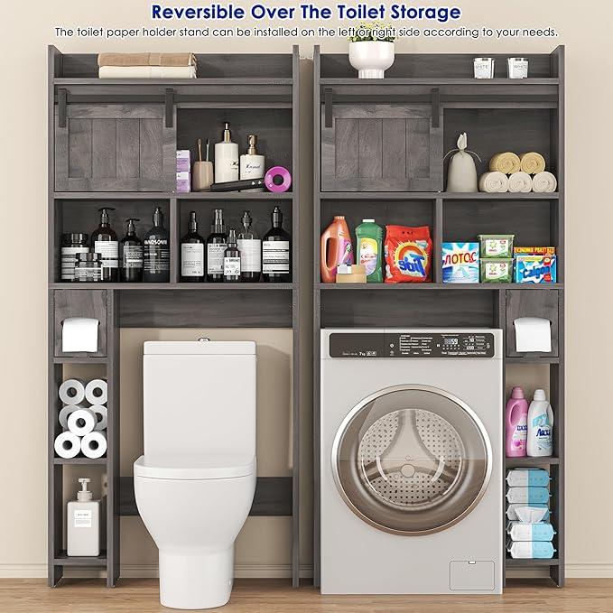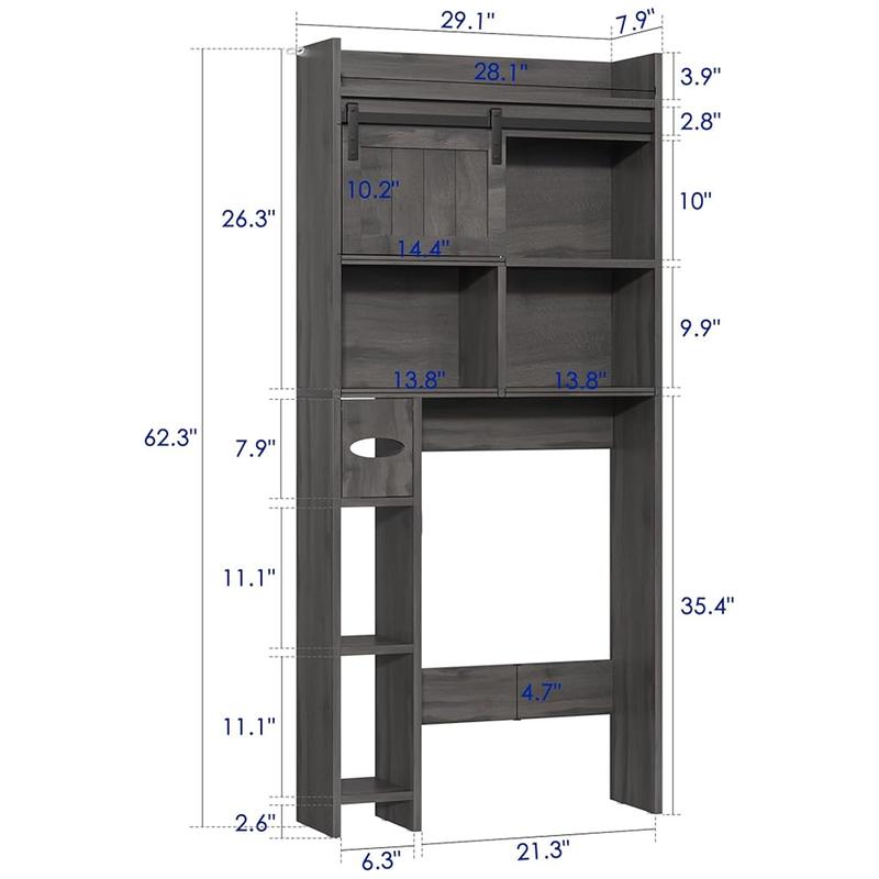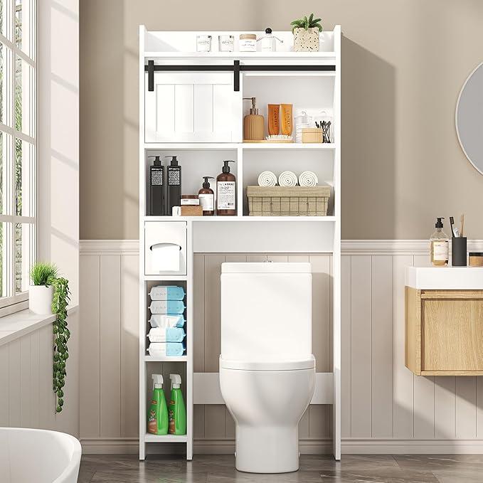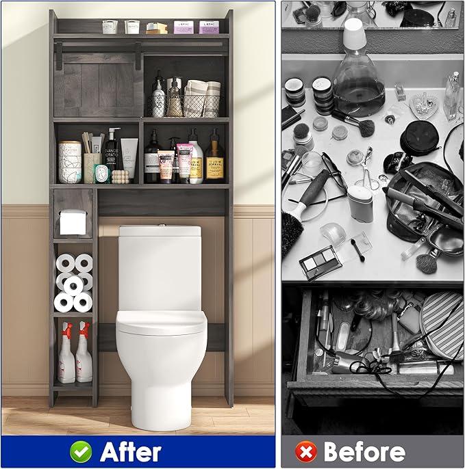 ·Spacious Storage Space: This over toilet cabinet features 1 large cabinet with sliding door, 1 top shelf, 2 compartments, 3-tier shelves and 1 paper holder, You’ll have enough space to organize towels, toilet papers, magazines, plants, and other toiletries