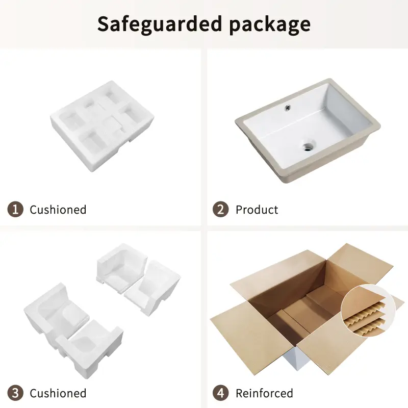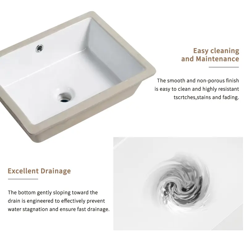 European-inspired design that combines elegance and practicality.Its smooth, rectangular shape 18 inch Undermount Bathroom Sink fits seamlessly in both modern and traditional bathroom settings.Our 18x14 inch rectangle white sinks are widely used in home bathroom, restaurant, office building, scho