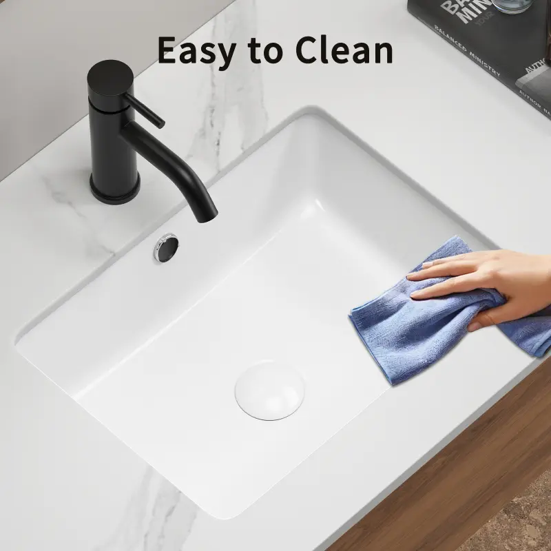 Long-Lasting Durability & Convenience-Made from solid porcelain, the Undermount Bathroom Sink provides exceptional durability and high shine. With a built-in overflow feature, this bathroom sink ensures water stays within the basin, preventing messy spills and helping keep your bathroom dry and clea