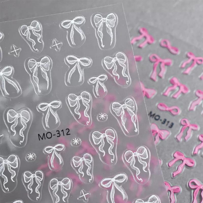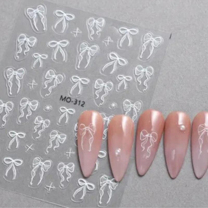 🎀 White Ribbon Nail Art Stickers | Coquette Aesthetic Nail Art Stickers - Easy Application