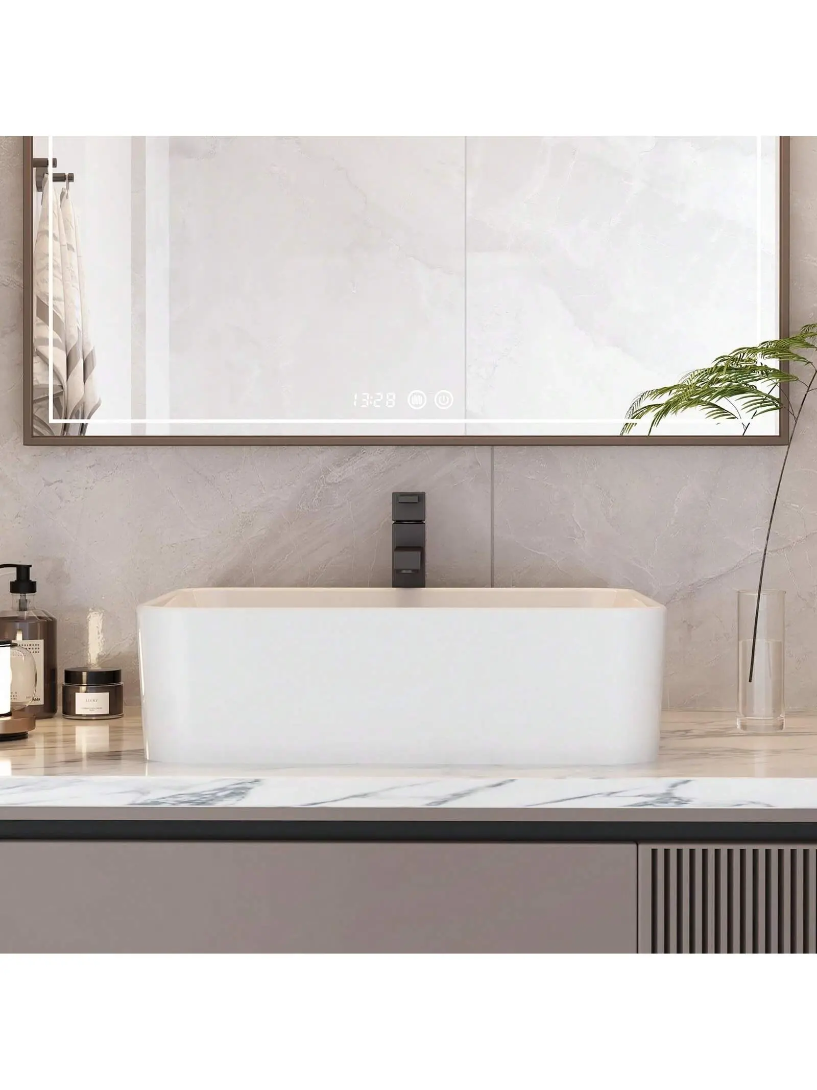 Elevate your bathroom decor with our Modern Undermount Bathroom Vessel Sink, designed to fit seamlessly into any decor style. This sink features a classic oblong shape and a white finish, making it an elegant addition to your home, restaurant, office building, school, or indoor or outdoor space.