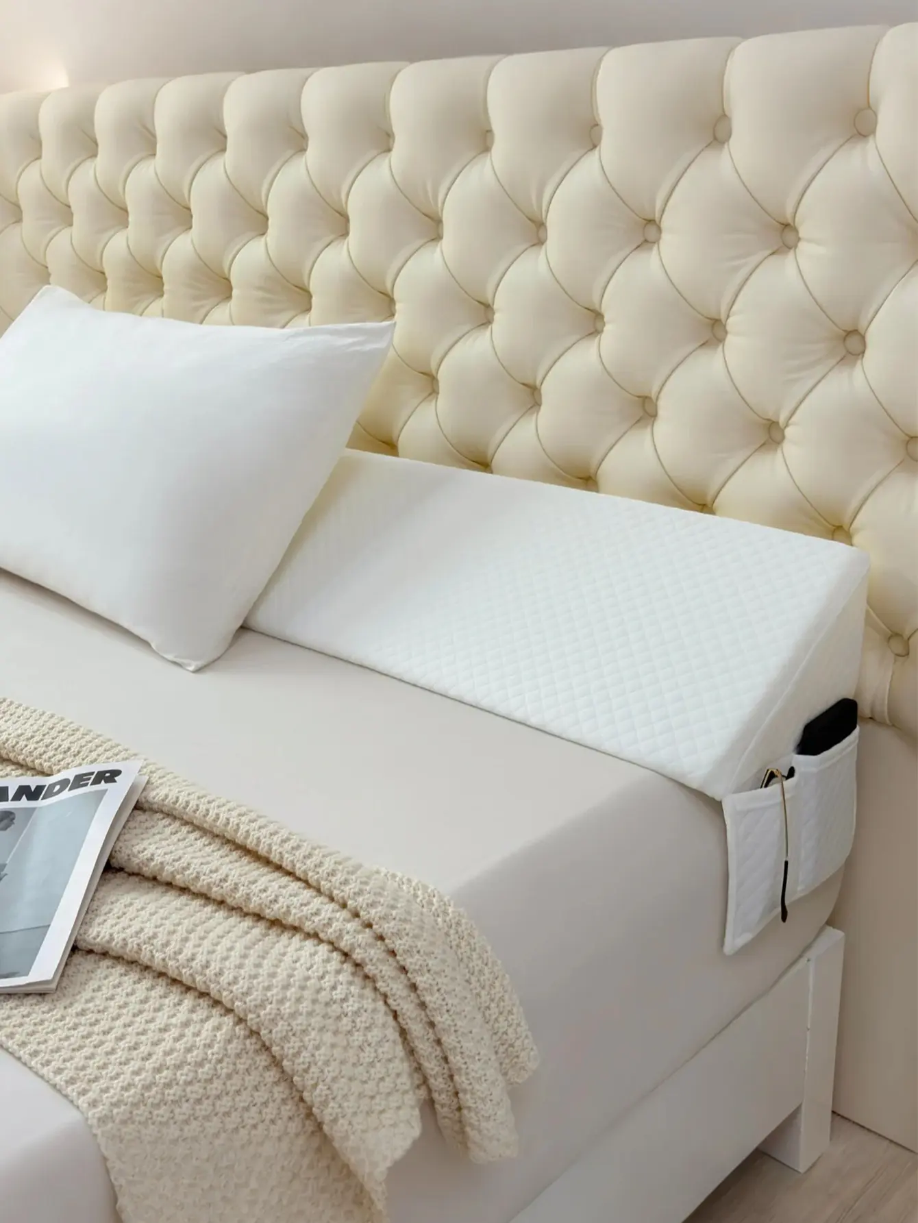 Great for keeping things from falling behind the bed!