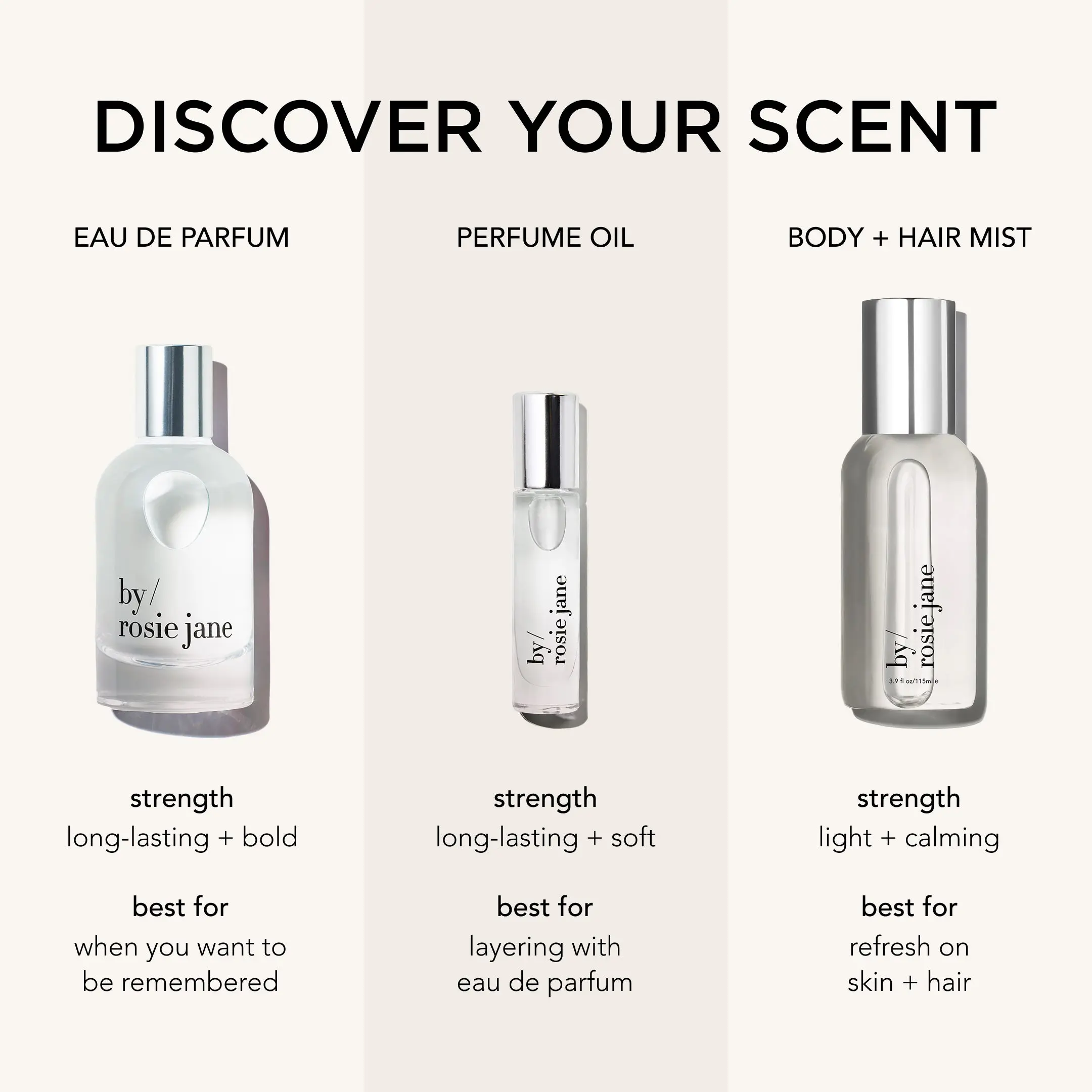 I don't normally buy body mists but I like the RosieJane line, so I thought I would give this a try. It is a fresh, clean scent thst pairs well with other rosie jane fragrances. Since it is a body mist it is a subtle scent . It lasts awhile, and is not overwhelming. Would recommend if this is what you are looking for.