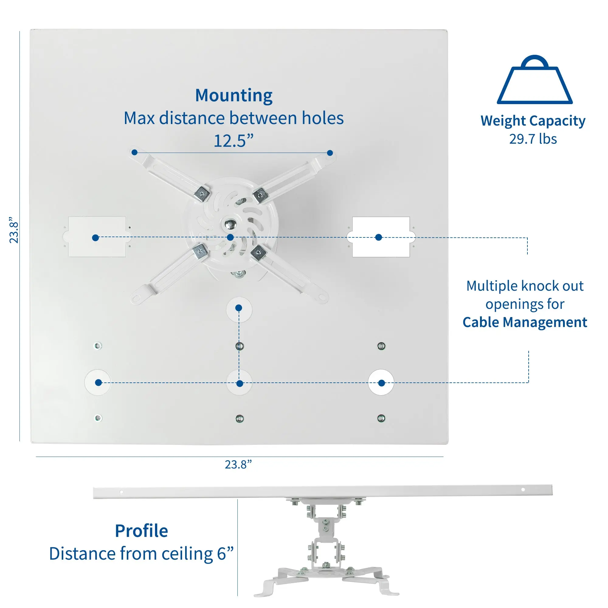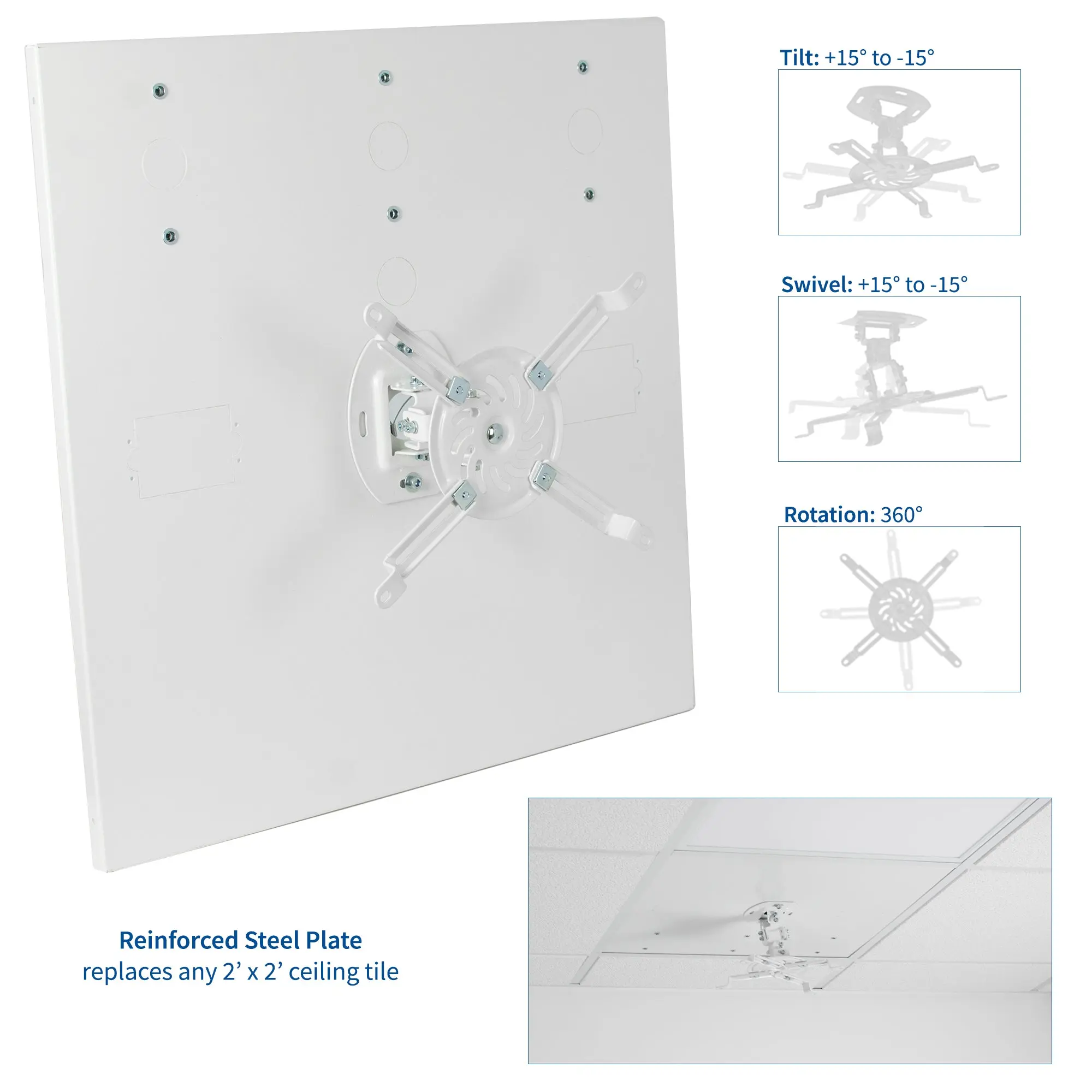 White Universal Drop Ceiling Projector Mount