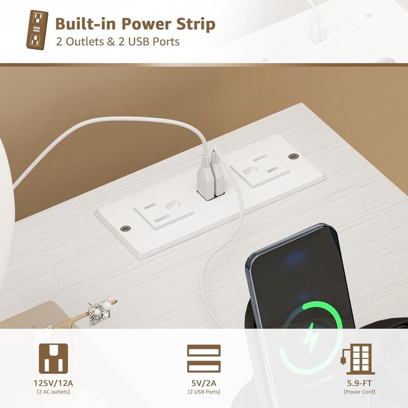 ·Stay Powered and Connected: Tired of finding a place to charge your phone or beauty tools? With the built-in charging station, includes 2 standard plug sockets and 2 USB ports, you can easily charge multiple devices, keeping your phone, laptop, or hair tools within reach