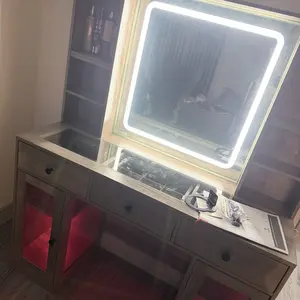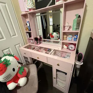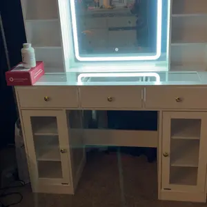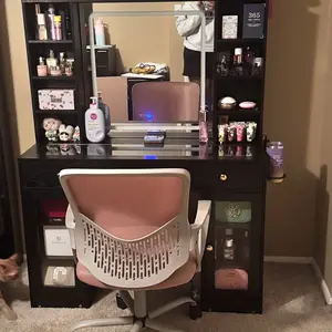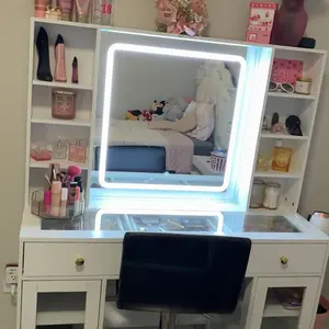 ·【VANITY MIRROR WITH LIGHTS】The vanity mirror with lights desk is offers 3 color modes: warm yellow, natural white, and cool white. Touch to choose different lights, long press on the button allows you to adjust the brightness. You can adjust easily brightness and color via through smart switch or APP in makeup desk, perfect for your makeup routine and daily skincare.
