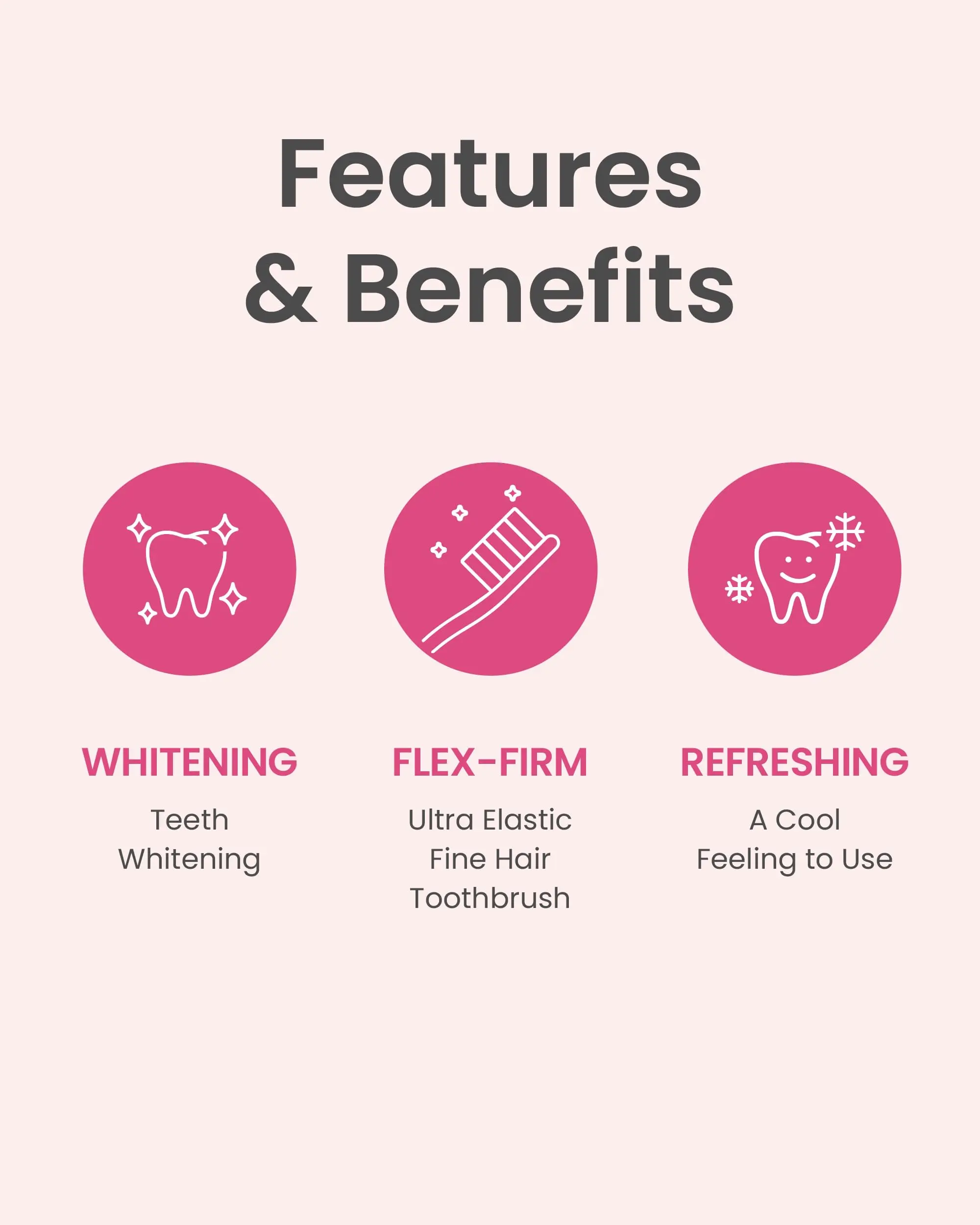 ✨ Volume: 3.7 fl.oz. Formulated with 1,000ppm fluoride. Achieve stain removal in just 2 weeks. This duo includes a whitening toothpaste and a pink toothbrush, perfect for maintaining oral health and enhancing your smile.