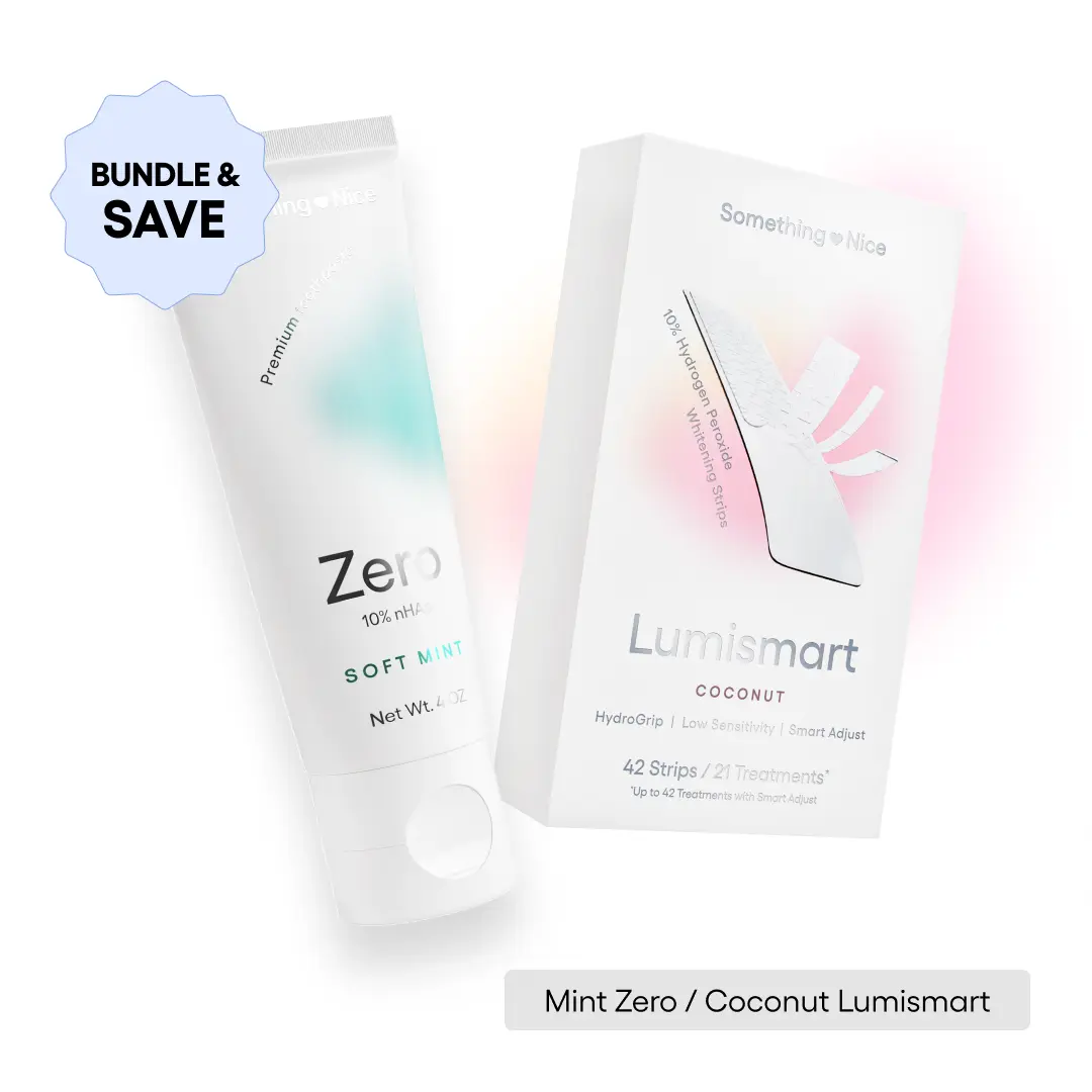 Transform your smile with the Something Nice Whitening Kit, developed by Dr. Ben Winters (The Bentist). This carefully curated set combines our revolutionary Zero Toothpaste and Lumismart Whitening Strips for a complete cleaning and whitening system that delivers professional results without the sensitivity.