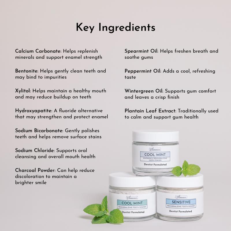 This has really helped my teeth sensitivity. It’s an adjustment to the powder feeling at first but it has made a huge impact on my teeth. I used sensodyne before with no improvement so this is a great relief to find something that works.