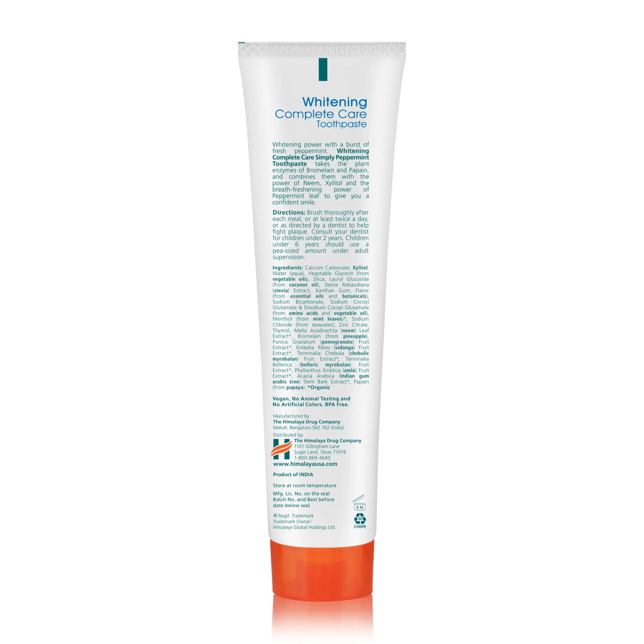 5. Himalaya Botanique Whitening Complete Care Toothpaste, Peppermint Flavor - Whitening Toothpaste Without Fluoride for Brighter Teeth & Fresh Breath - Vegan, Gluten Free, 5.29 oz