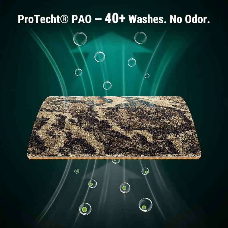 ProTecht PAO antibacterial technology neutralizes odors and bacteria, effective after 40 washes. Stay fresh and clean during your hunt.