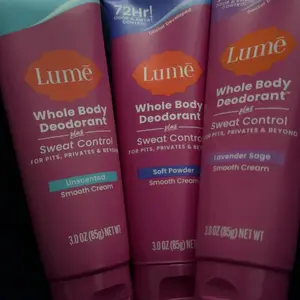 I LOVE LUME💜I have been a loyal and consistent customer since my first order they truly are Fantastic! I’ve had issues throughout life with excessive sweating & struggled to find a deodorant&anti-perspirant that worked. Lume Not only makes sure that you stay smelling good, but it truly makes a huge difference with the antiperspirant!! I tried both the cream and the stick, I am loyal to the cream. I found the stick to be messier and Needed to be heated up by my body heat to spread where the cream is a small amount rubbed in, hands washed & You’re good for a well over 24 hours!!!